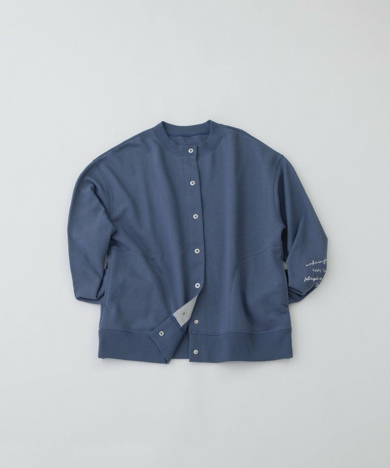 昨年より丈を短くアップデートした、裏毛のベーシックカーディガン。タオルのようにパイル状に編まれた生地は、空気をふくんでふわっと軽やかな着心地。適度な保温性と高い吸水性があり、蒸れにくいのも特長です。ほどよいゆとりと長めの袖、両サイドポケットでデイリーに活躍。リングスナップボタンや、前立てに配した微配色のグログランテープでさりげなくアクセントをプラスしています。後ろ中心のスワンネームや、左袖に入れたロゴプリントもポイント。日本生地を使い、日本縫製で仕上げています。