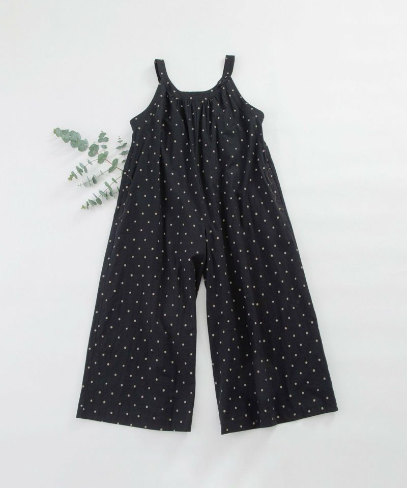 ・細めストラップのラウンドネックデザインで、ふっくらしたボリューム感の涼しい着心地のサロペットです。