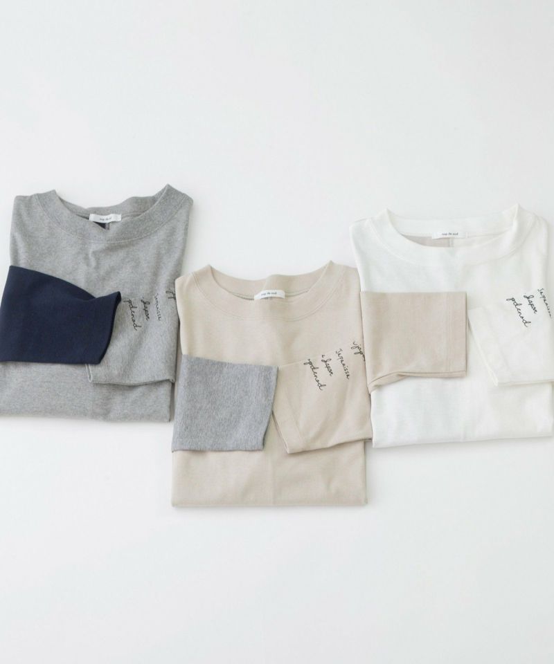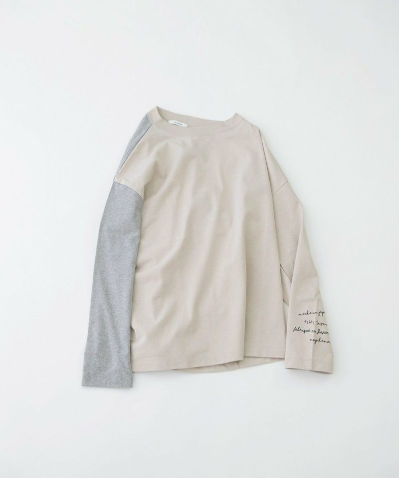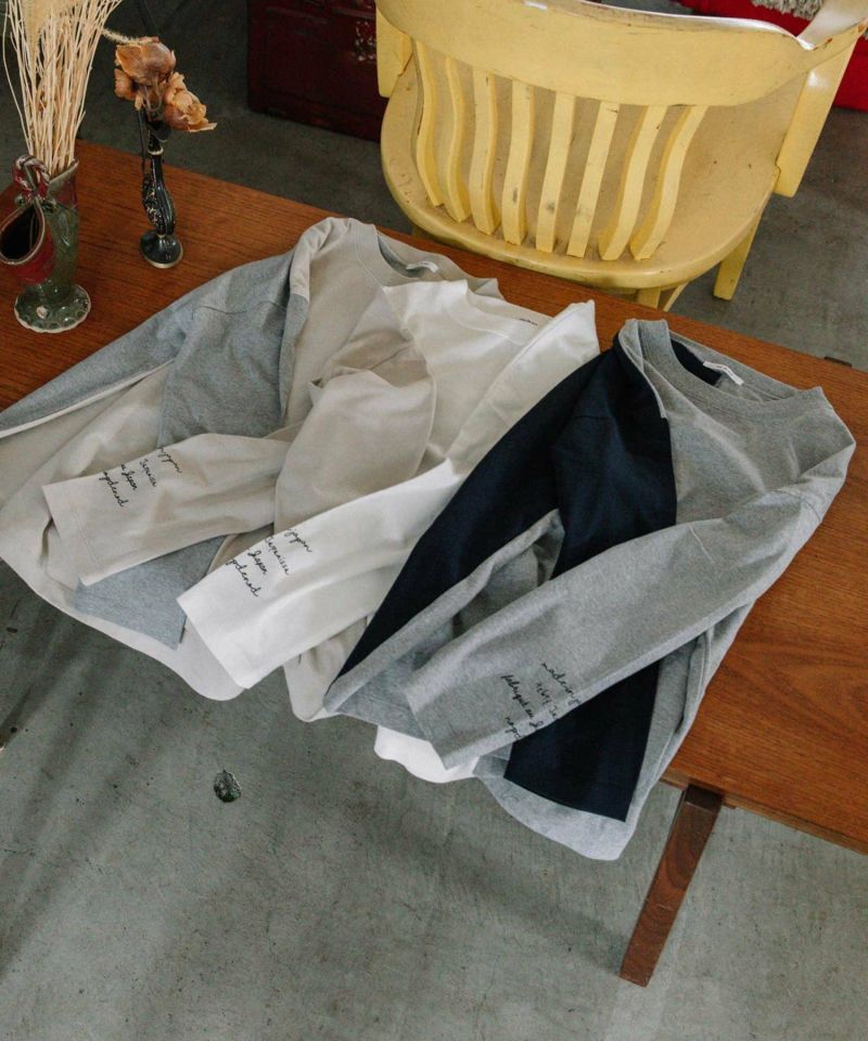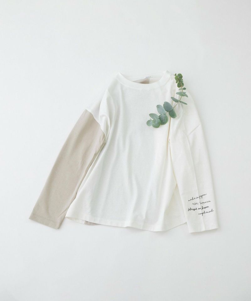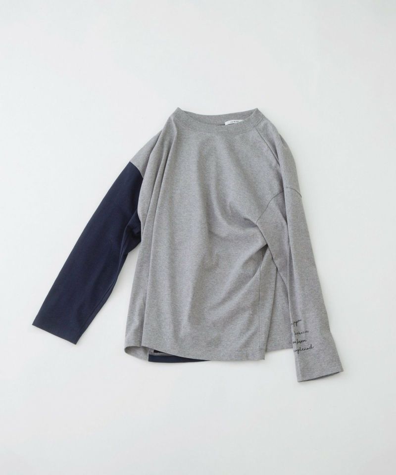・右袖・右後ろが配色のバイカラー。左袖にはmade in japanを英語・フィンランド語・仏語で表現したプリントが入ってポイントに。