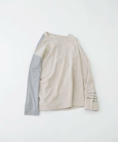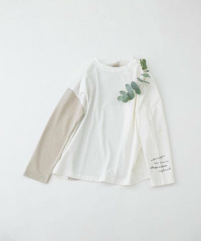 バイカラーを効かせたプリント入りロンT