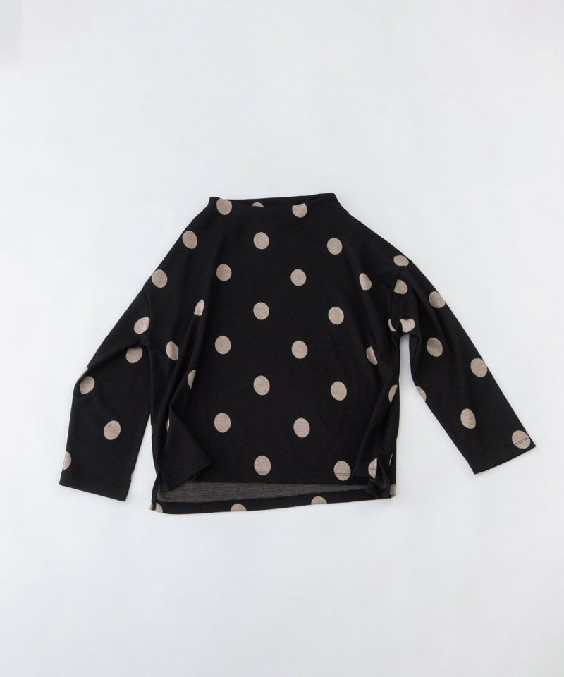 中肉のドット柄ジャカードで仕立てたカットソートップス。身頃から続くボトルネックで、さらっと1枚で決まるトップスです。
