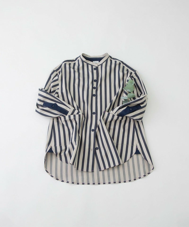 ・ビンテージメンズシャツ風のきれいな目面で、しっかり厚みのあるコットンサテンのシャツ。オリジナルのストライプ生地で、羽織でも使いやすいパッチポケットが付いています。