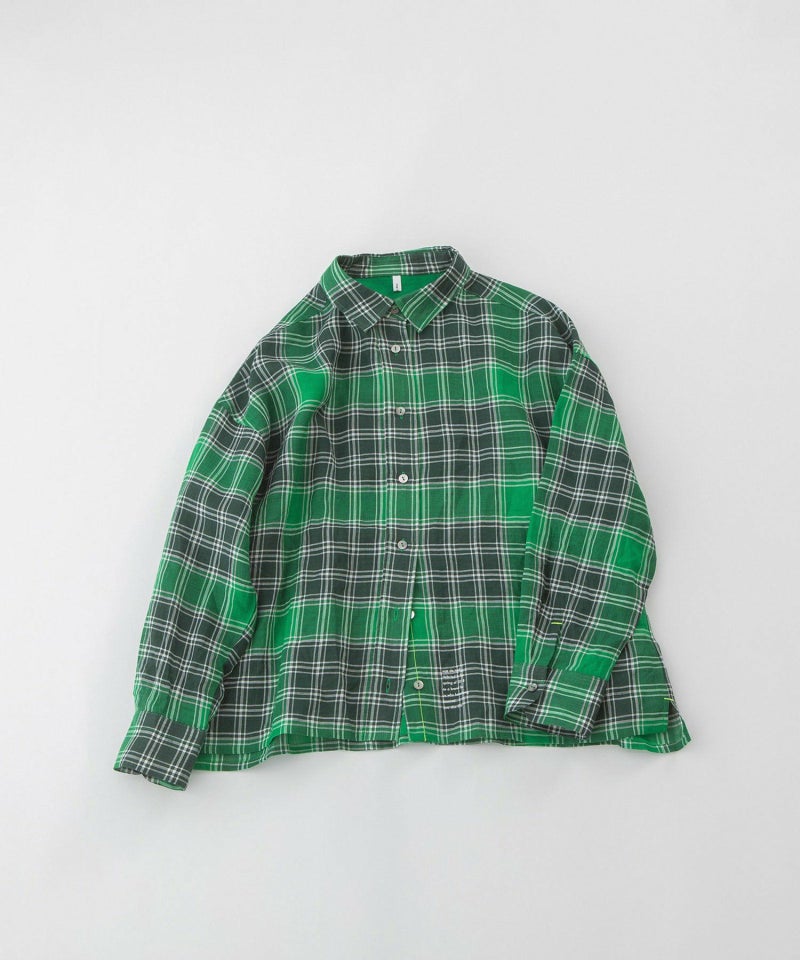 伝統的正統派なブリティッシュタータンチェックをモチーフにしたオリジナル生地のシャツ。繊細な表面感と涼しげなシャリ感を併せ持つ細番手のラミーを使用しました。程よい透け感が涼しげな印象で、初夏の重ね着にぴったりです。ボタンを留めて1枚着、フルオープンで羽織りとしても着回ししやすい。きちんと見える長すぎないジャスト丈です。左前の裾に入れた文字プリントや、開けた時にちらりと見える配色ステッチもポイントです。