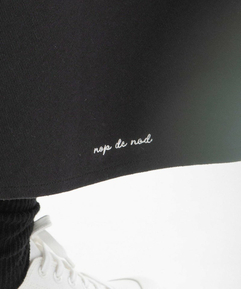 トレンドの大人っぽい細長シルエットがかなうナローフレアースカート。右後ろ裾にnop de nodのロゴ刺繍が入っています。ウエストはゴム仕様で、紐先に付いた六角モチーフもさりげないポイントに。右後ろにスワンネーム、右サイドポケット付き。
