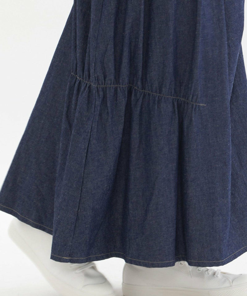 【SALE】コットンリネンデニム・コットンツイルシャーリングデザインスカート