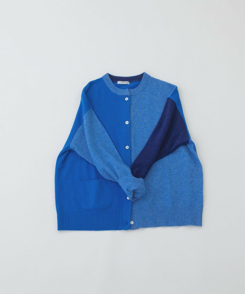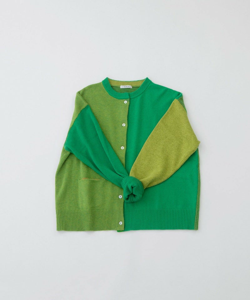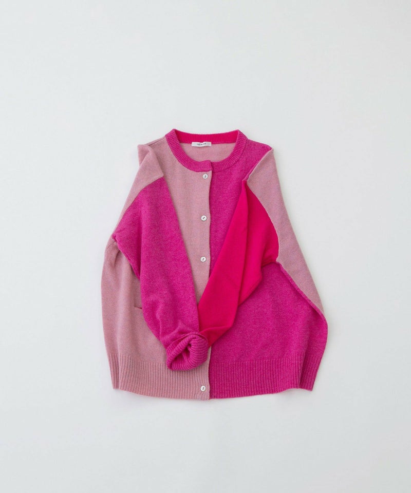 薄手でも暖かい、エクストラファインメリノ糸を使った定番カーディガン。同系色の3色を組み合わせています。ゆとりのある身巾とドロップショルダーでリラックスした着心地。バランスよく着られるジャスト丈です。