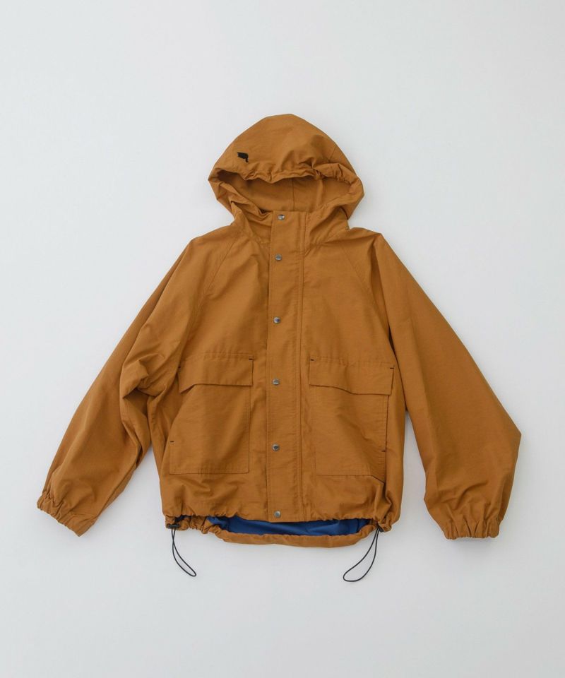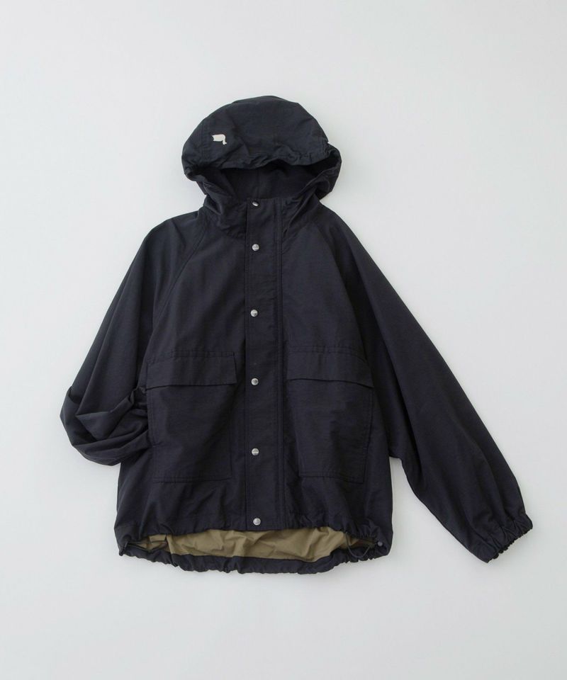 秋や春に活躍する軽やかに羽織れるコットンナイロンのマウンテンパーカ。大きなフロントポケットは脇からも入れられる2重構造で便利。袖口はゴム仕様で楽に捲れます。フードの後ろにはさりげないスワン刺繍入り。後ろが少し長めの前後差デザインでバランスよく着て頂けます。