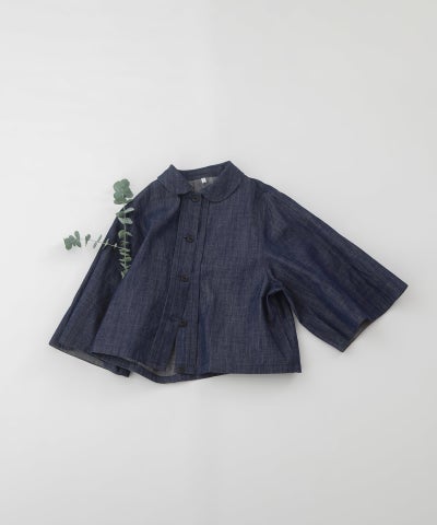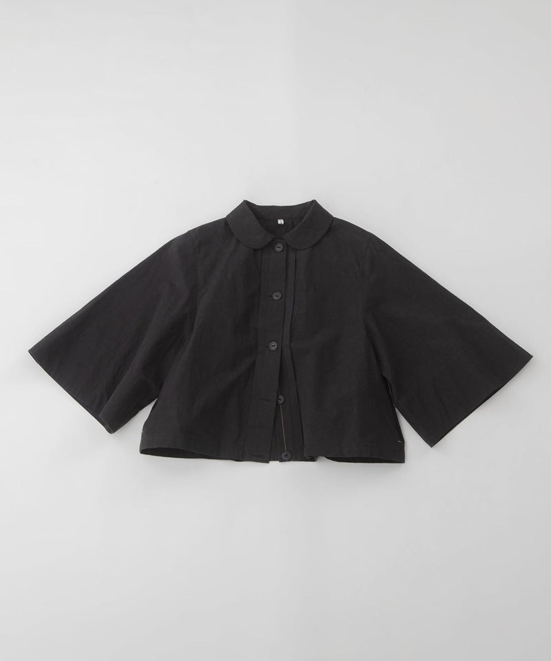 ケープのように優雅に広がるフレアースリーブが印象的な、コンパクトなショート丈のシャツジャケット。モード感漂うフレアースリーブで、丸襟や太い前立てがカジュアルなのに上品さを兼ね備えたデザインです。両サイドポケットつき。