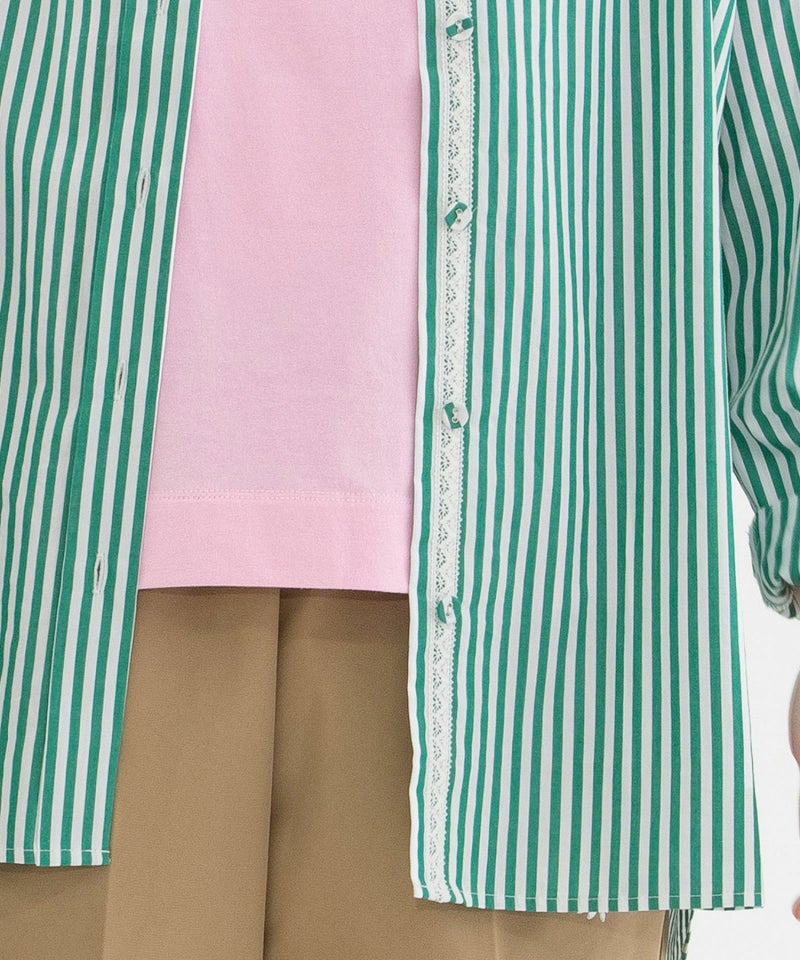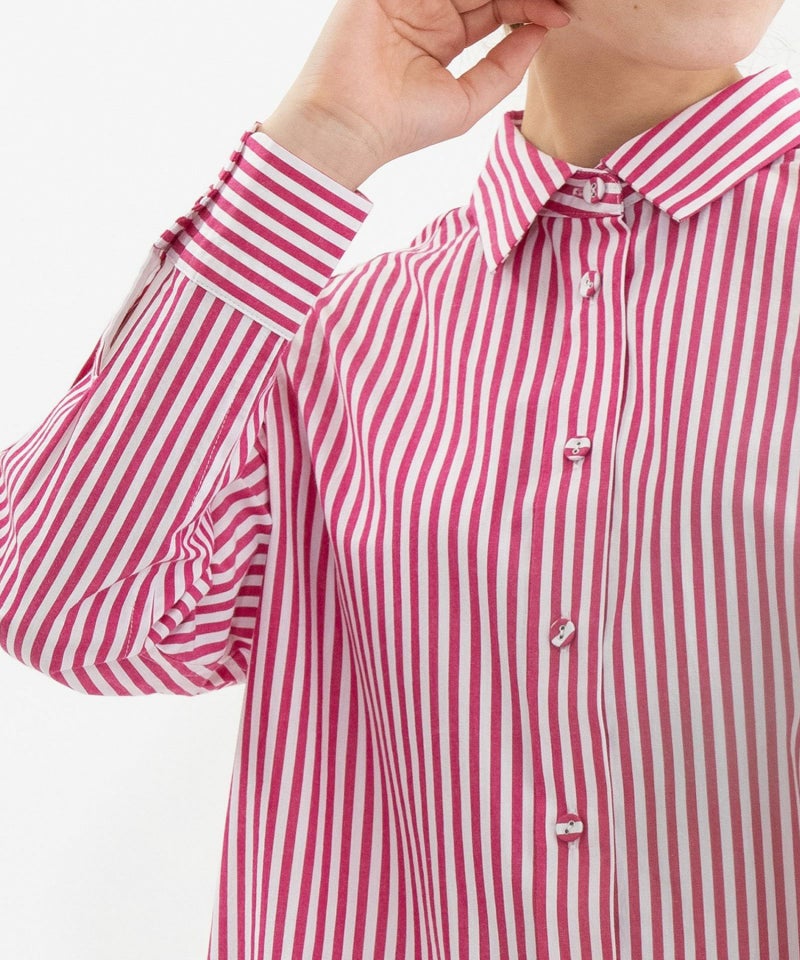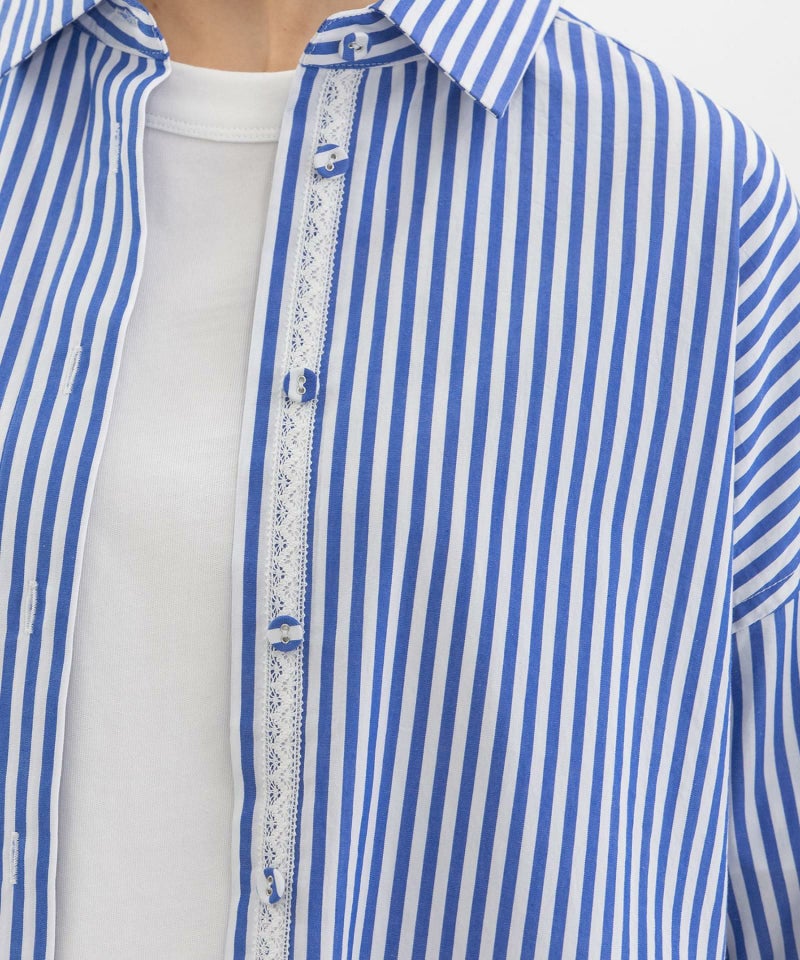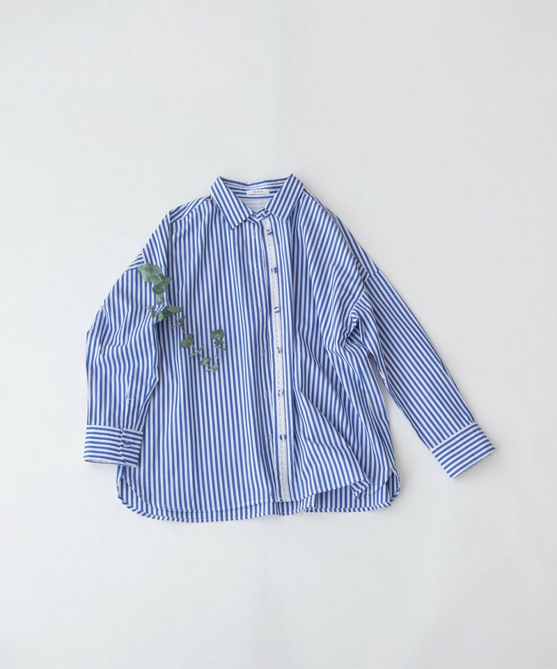 きちんと感のある、王道のロンドンストライプシャツ。主張のあるストライプ柄に、メンズドレスシャツ由来の端正さを取り入れ、カジュアルなスタイリングにも自然と品のよさをプラスしてくれます。背中のさりげないスワン刺繍や、下前立てのトーションレーステープがさりげないポイントに。