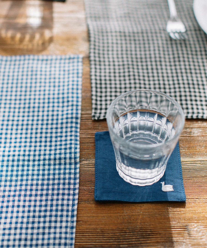 天然素材の中でもっとも丈夫と言われるリネンで仕立てたコースター。使い勝手のよいベーシックなデザインです。リネン素材で吸水性がよく、水に濡れても乾きが早いため清潔にお使いいただけます。洗いざらしでもナチュラルな風合いがあり普段使いにぴったり。暮らしの中にすっとなじみながら、テーブルの上をお洒落にしてくれるアイテムです。 nop de nodのアイコンであるスワンをさりげなく刺繍してあります。色違いで揃えたくなるアイテム。ランチョンマットとセットでどうぞ。プレゼントにもおすすめです。