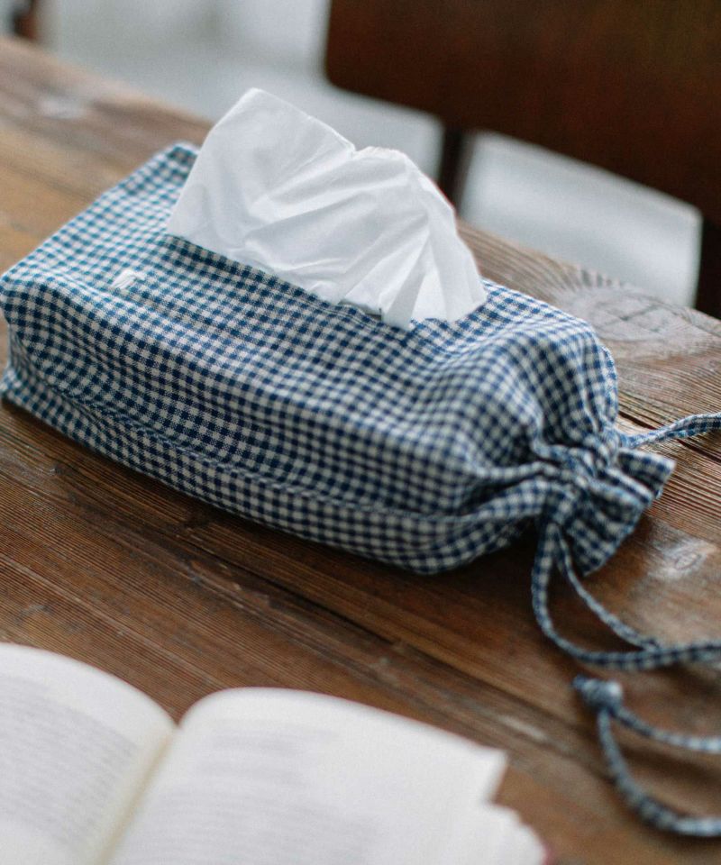 巾着タイプで入れ替えも簡単なティッシュボックスカバー。通常の横置きはもちろん、紐で壁やツールにかけたり、車の中で使うのにも便利です。リネン素材で吸水性がよく、水に濡れても乾きが早いため清潔にお使いいただけます。ナチュラルな風合いで、お部屋のインテリアにも馴染みやすいです。nop de nodのアイコンであるスワンをさりげなく刺繍してあります。お部屋ごとに色違いで揃えたり、プレゼントにもおすすめです。