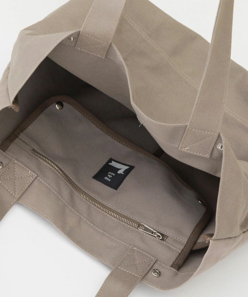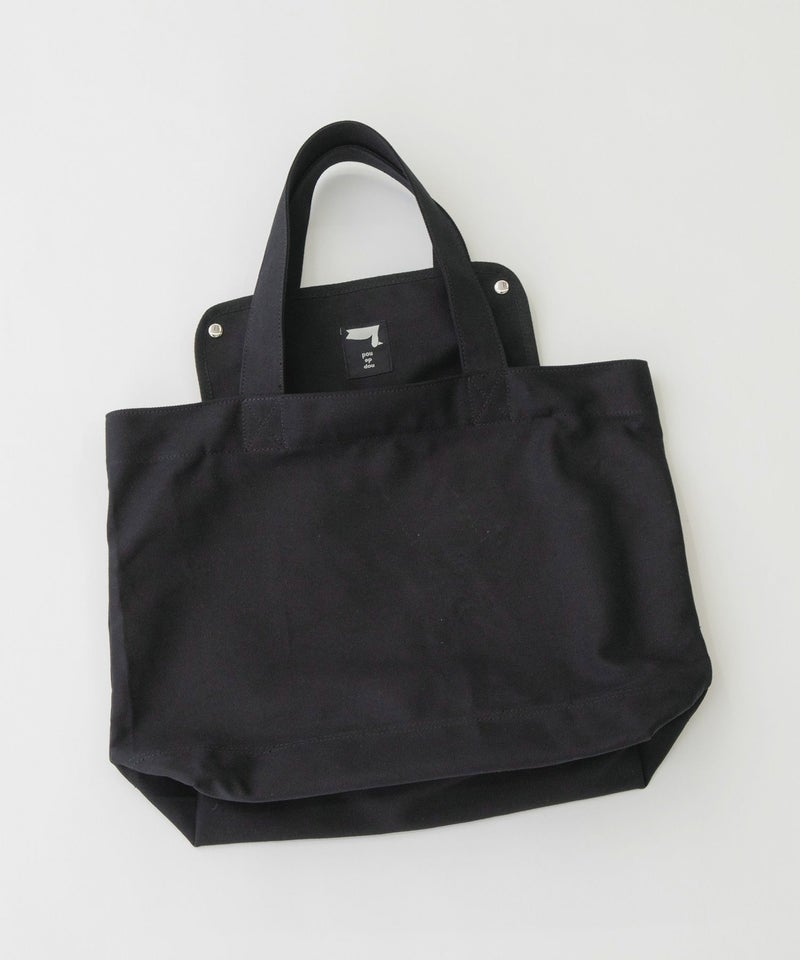 16ozキャンバスの定番Lサイズトートバッグ。底部分は2重仕立てで丈夫に。便利なサイドスラッシュポケットがあり、スナップで留められます。ファスナー付きの内ポケット(27.5cmx15cm)はスナップ留めで蓋にもなります。口留めスナップあり。