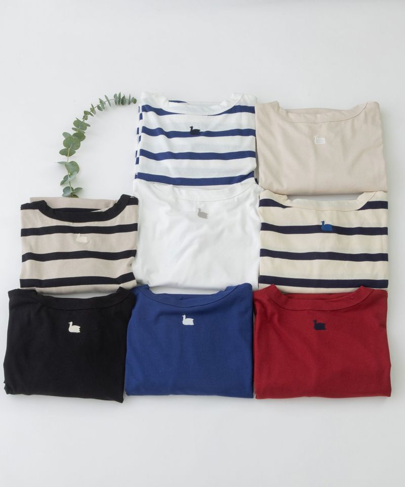 ・後ろネック下にトレードマークのスワン刺繍があります。