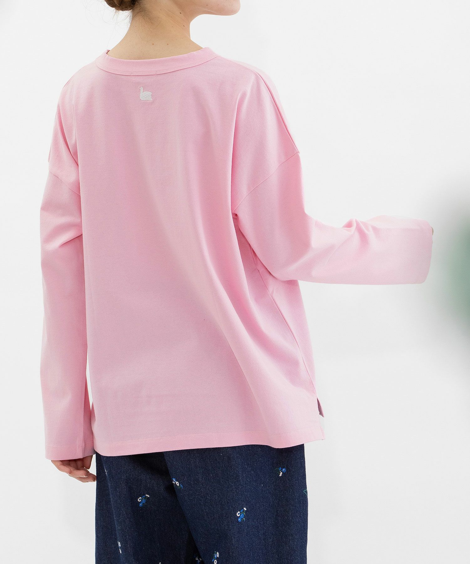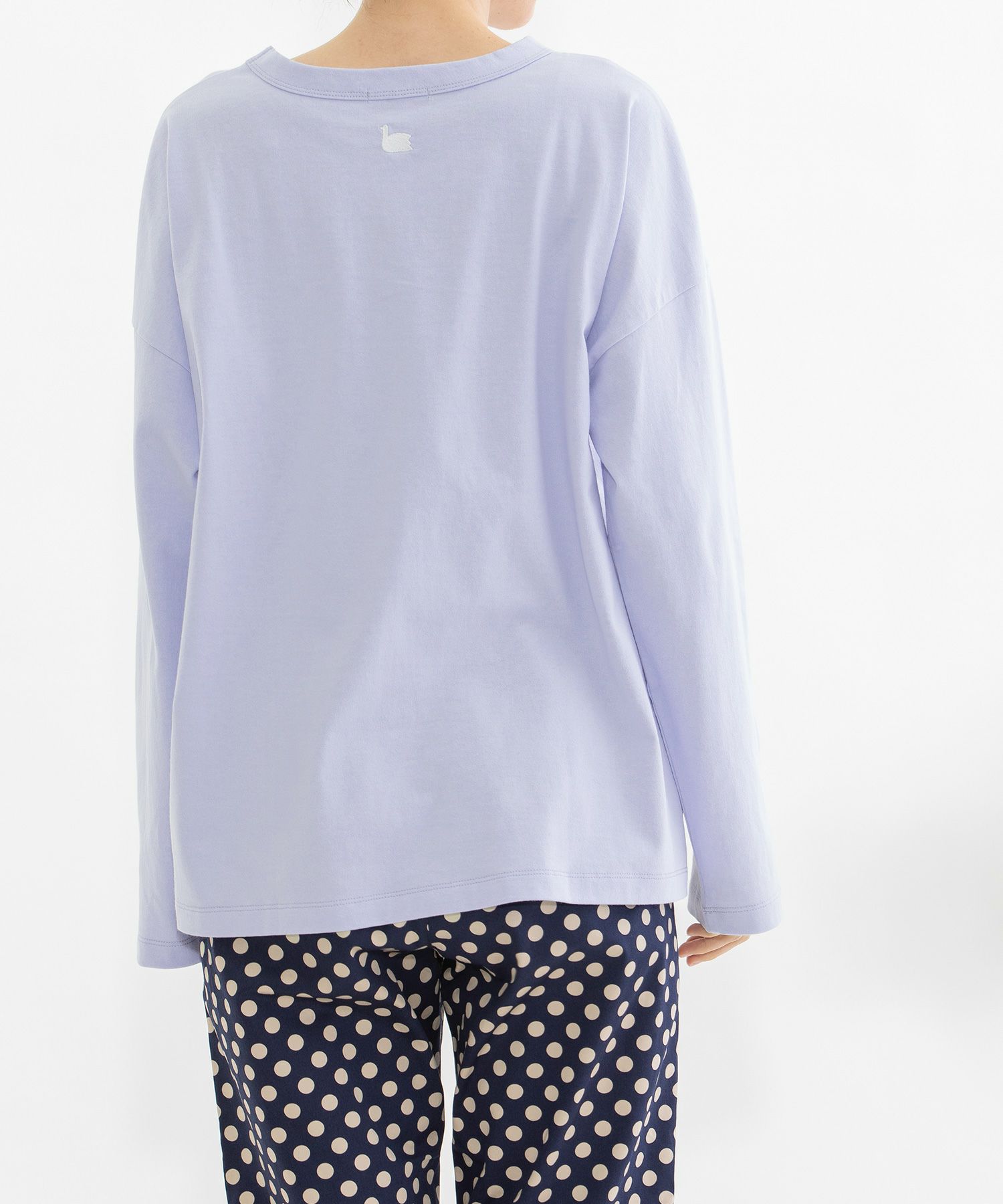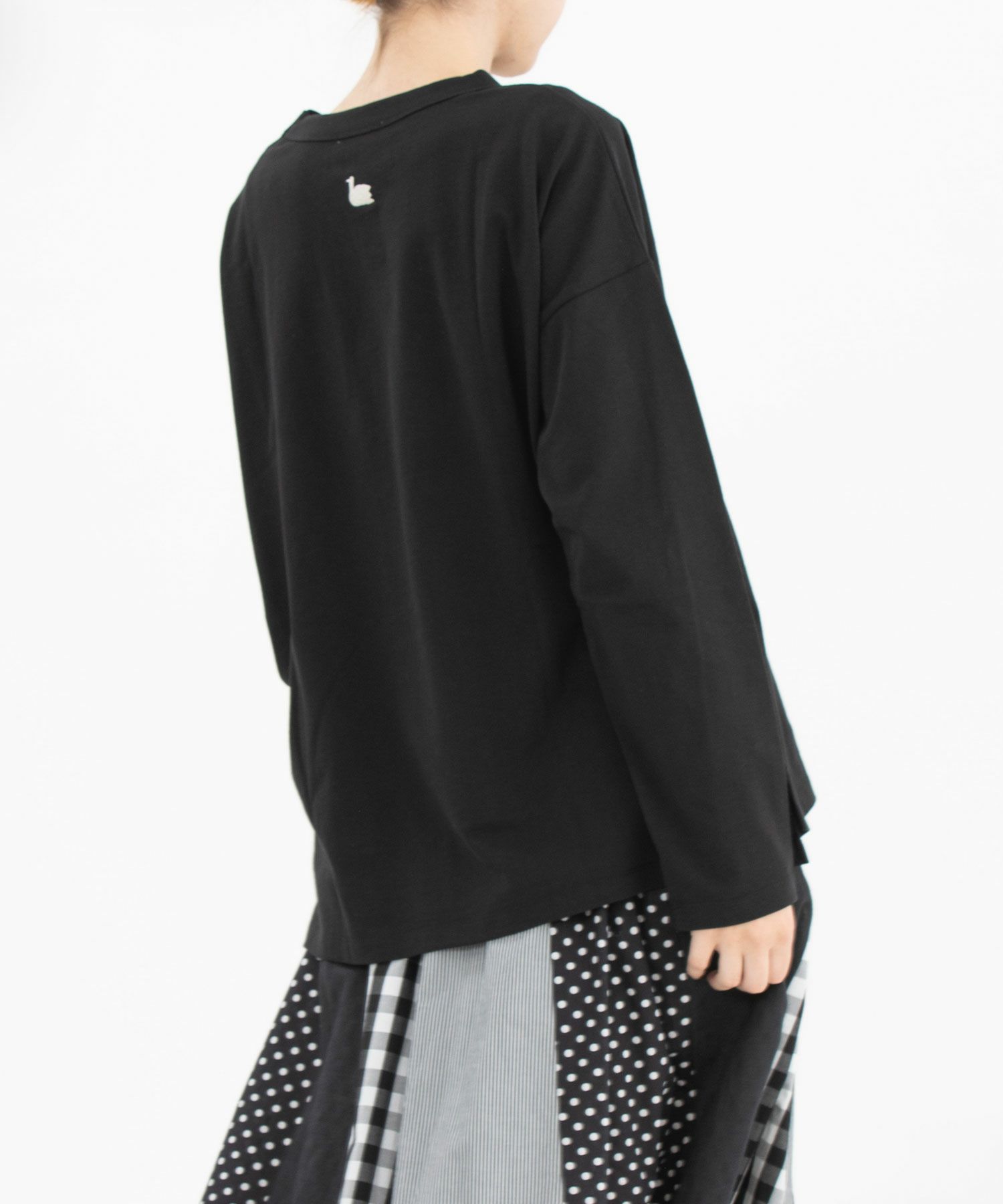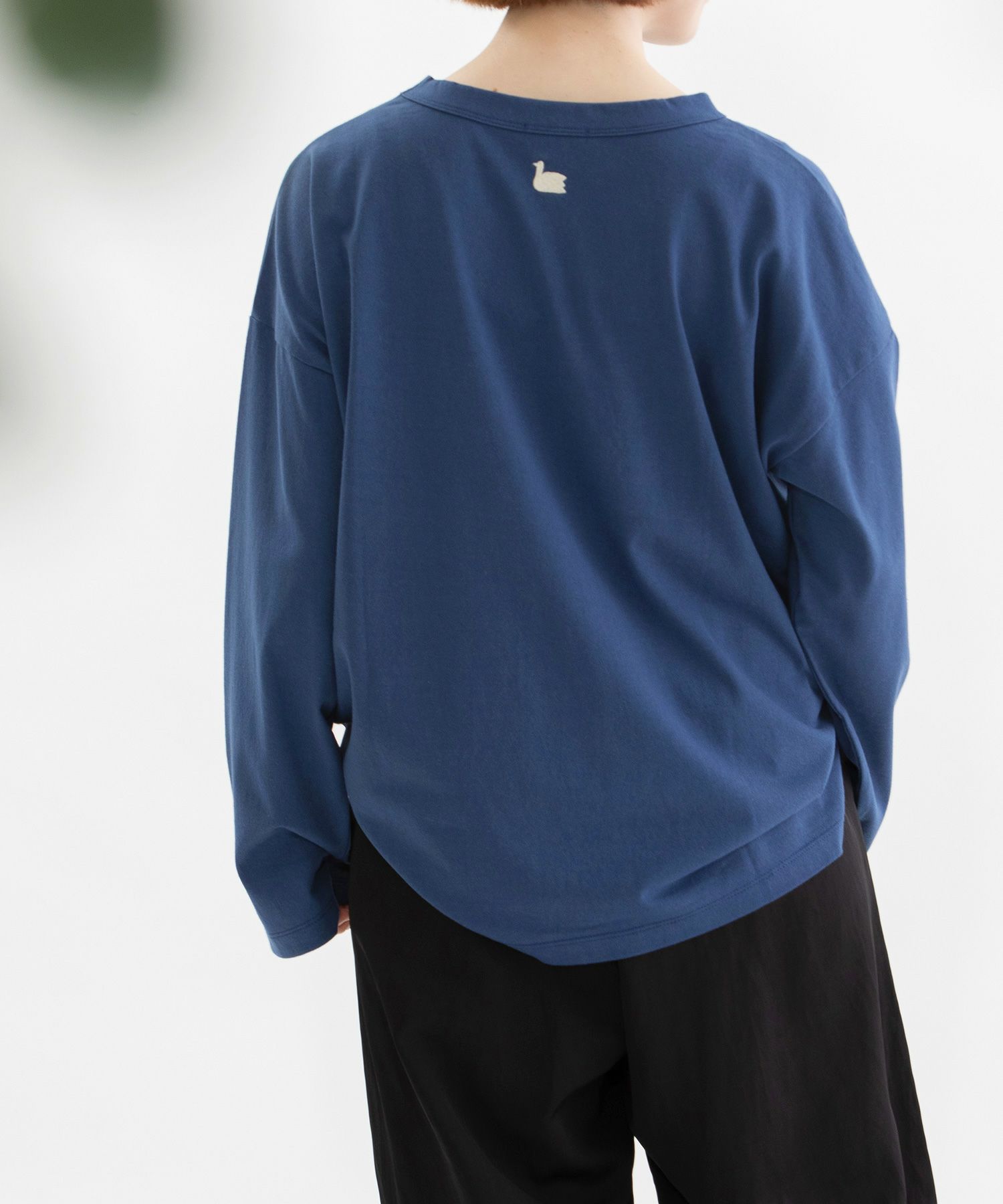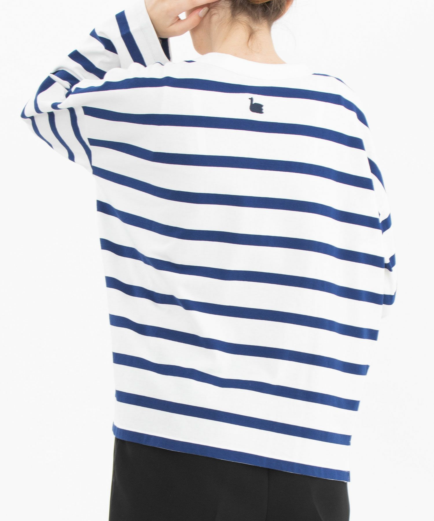 ・後ろネック下にトレードマークのスワン刺繍があります。