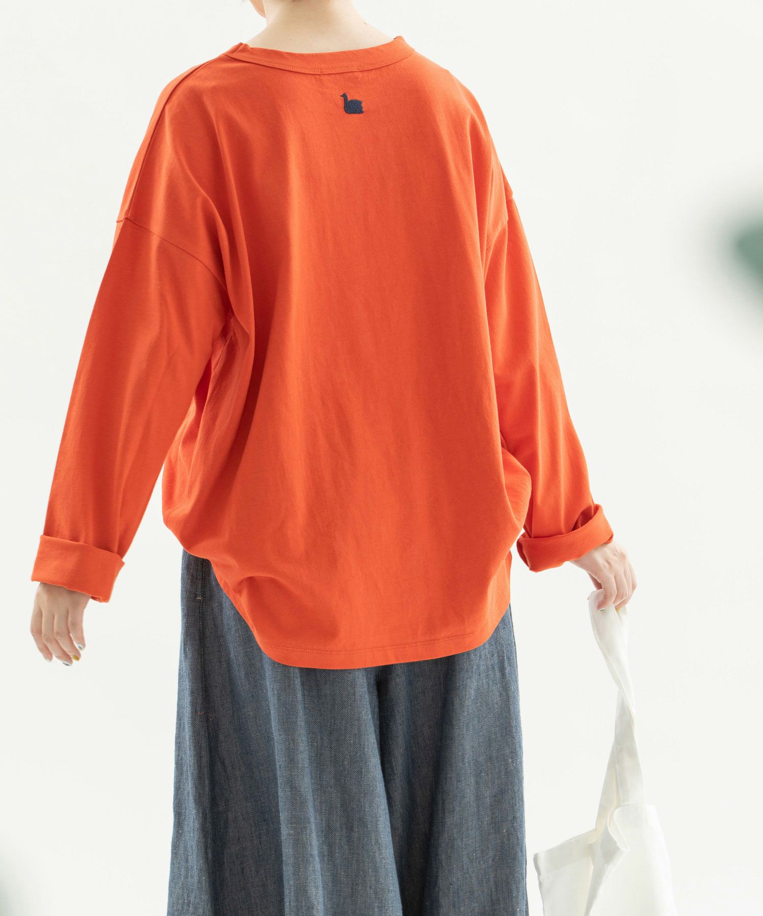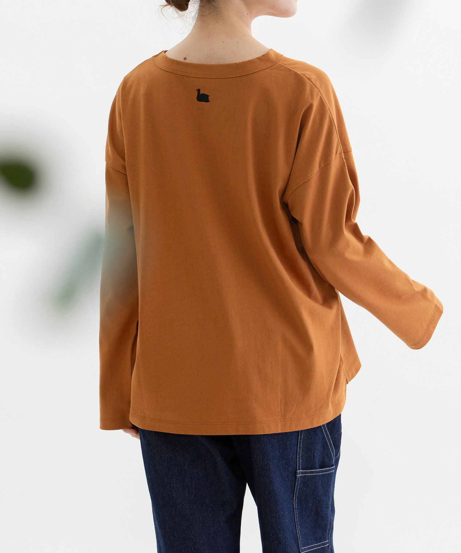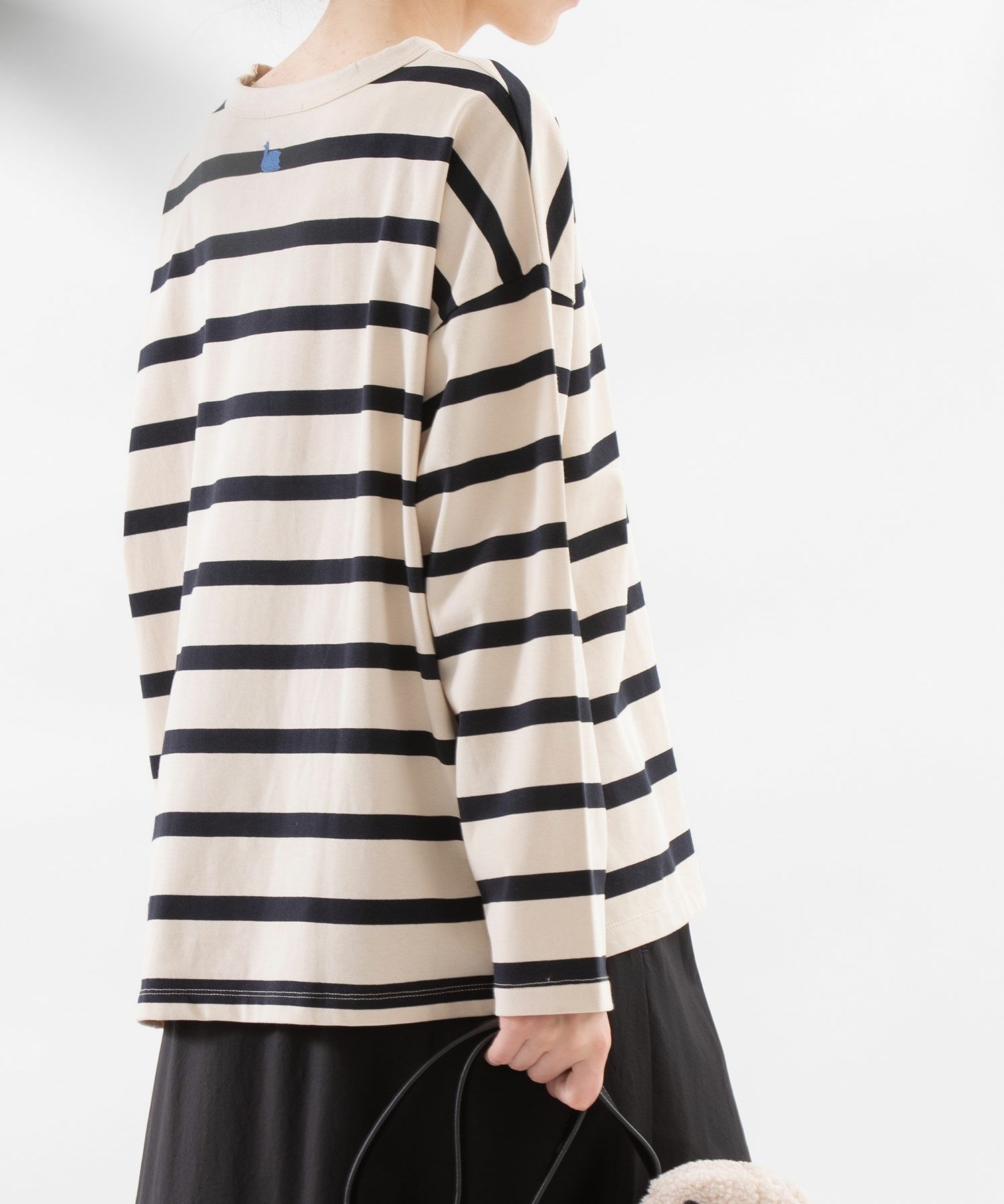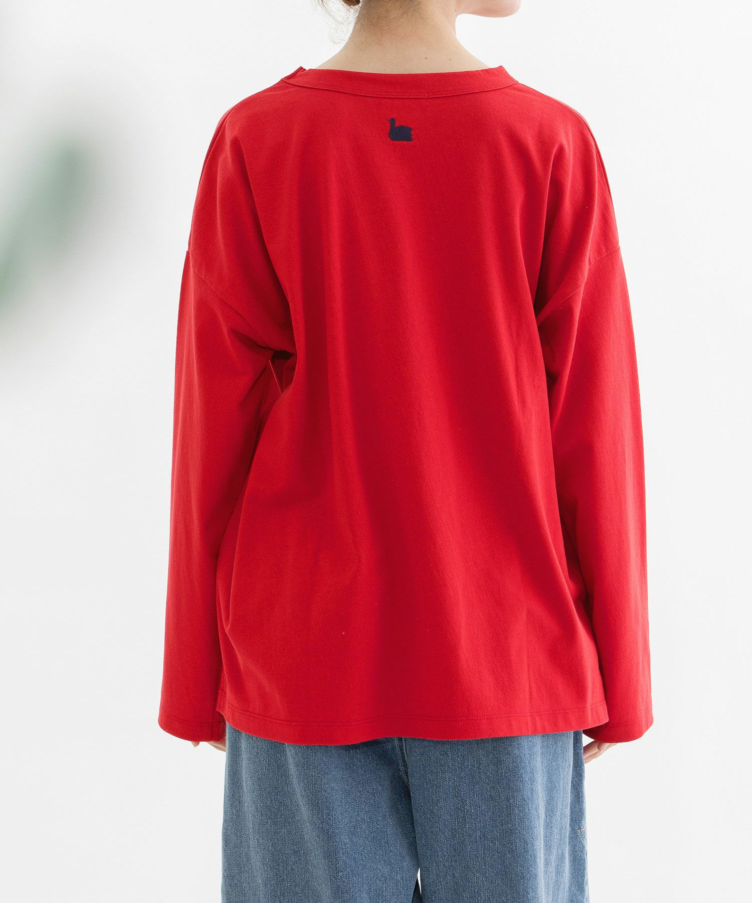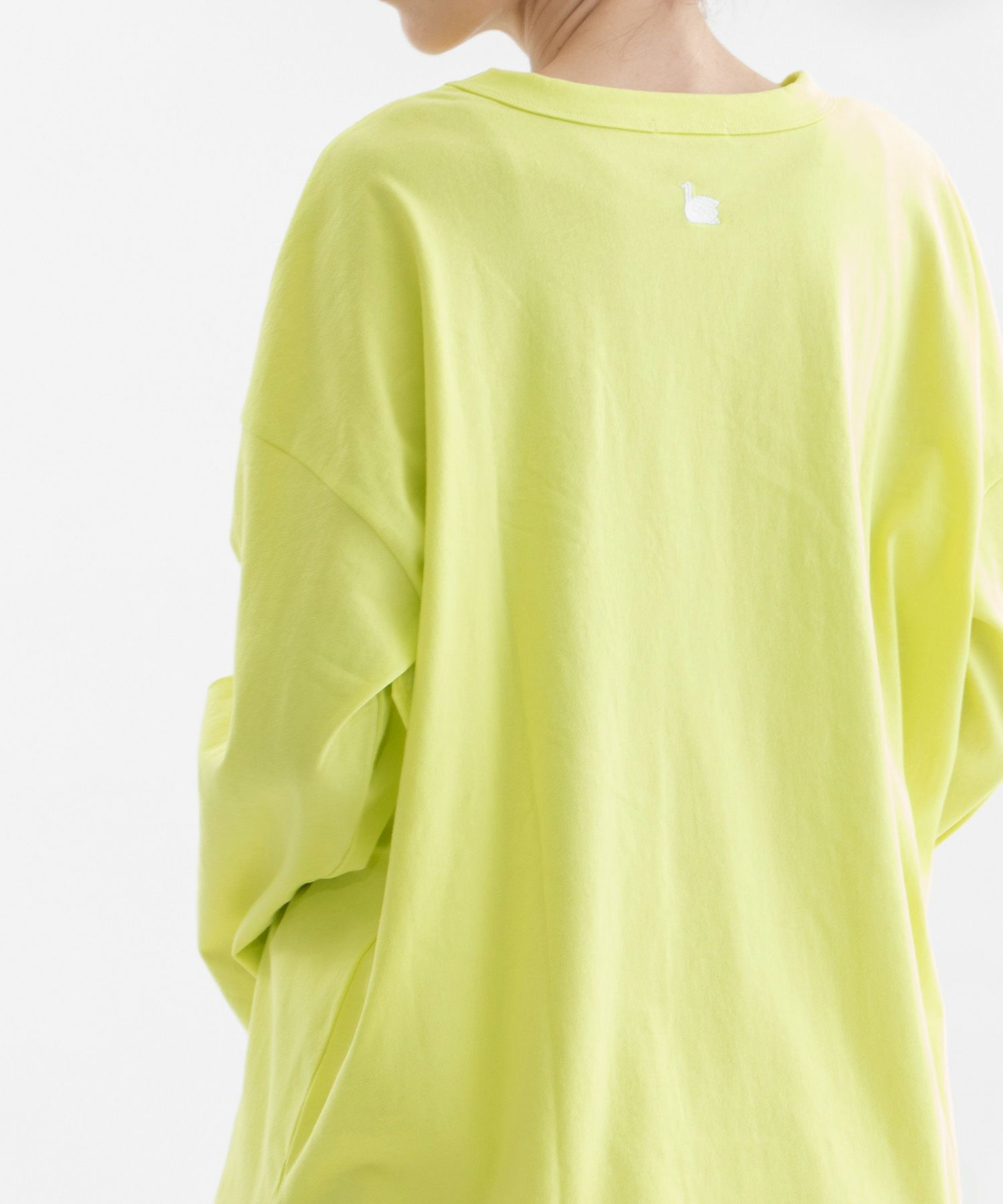 ・後ろネック下にトレードマークのスワン刺繍があります。