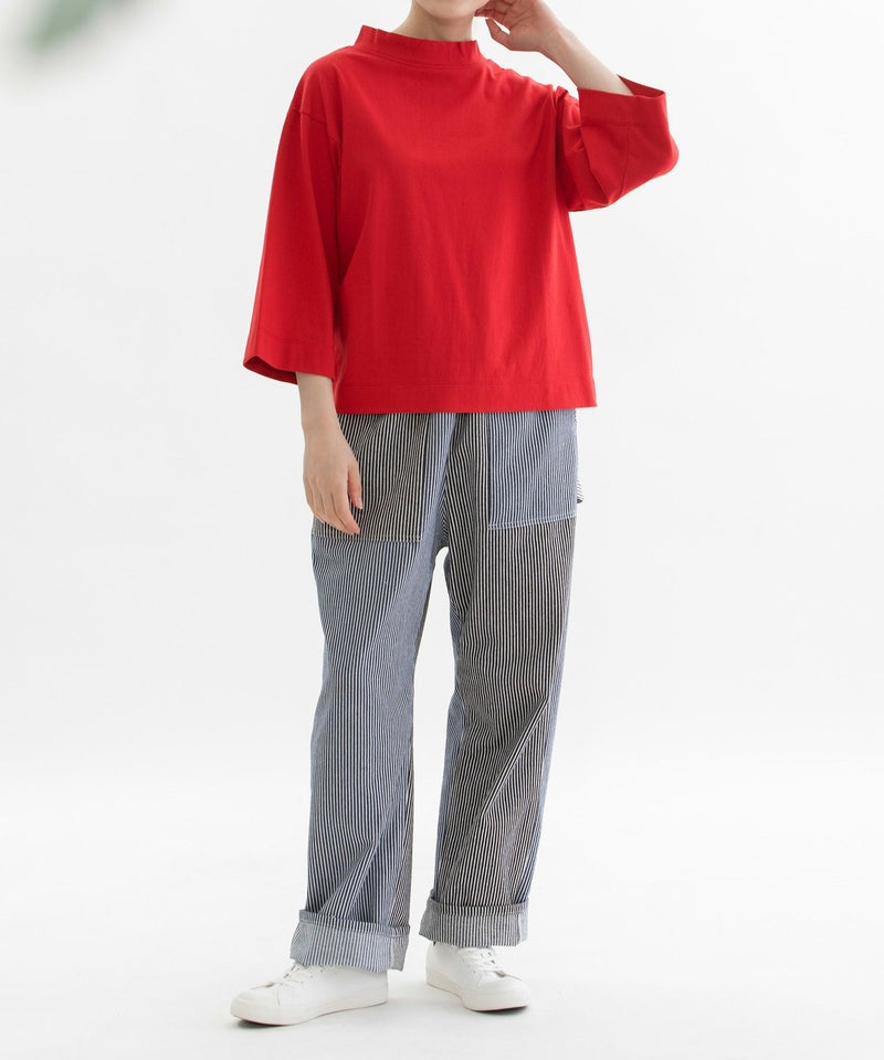 ・袖の切り替えが個性的な短めのワイドスリーブや、程よくゆとりのあるシルエットがラフに着用するだけで抜け感ある大人のカジュアルスタイルを作ります。さらっと着るだけでおしゃれに決まる1枚です。
