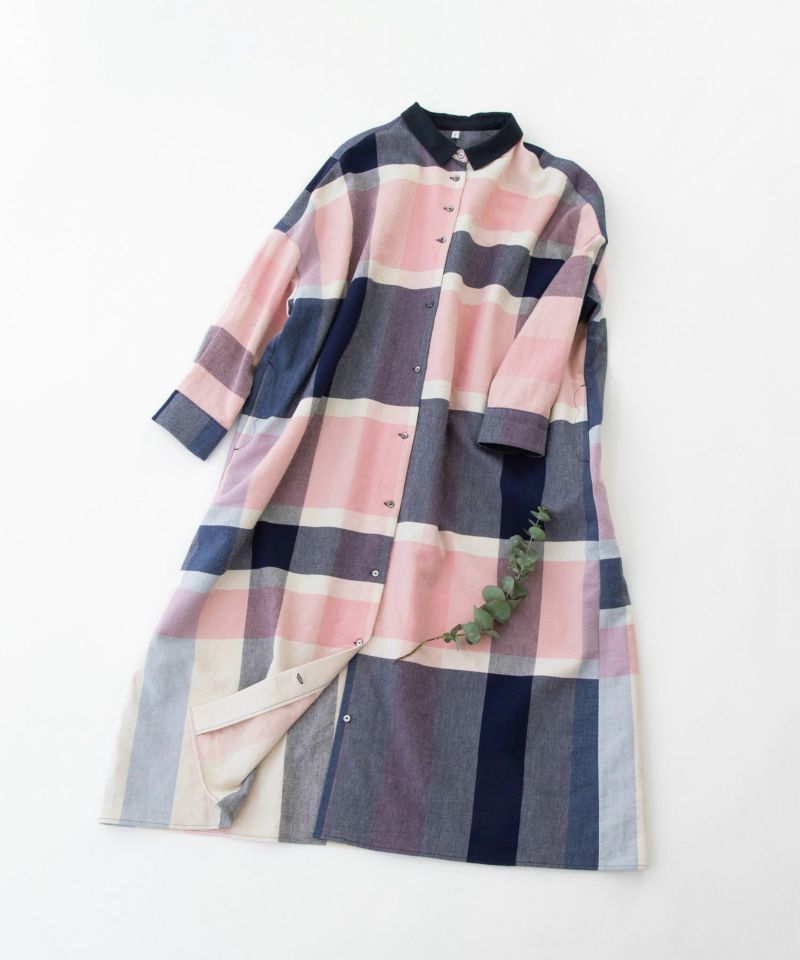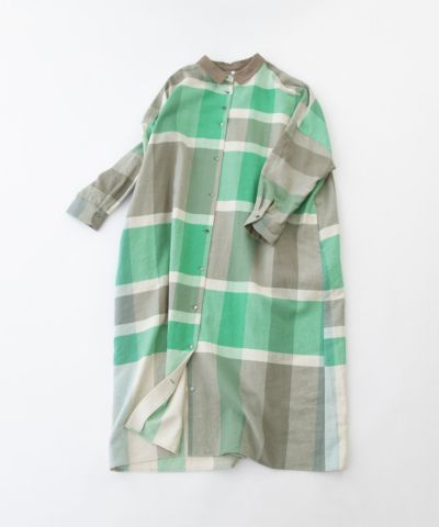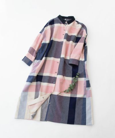 【SALE】Cielコットンリネン綾パネルチェックワンピース