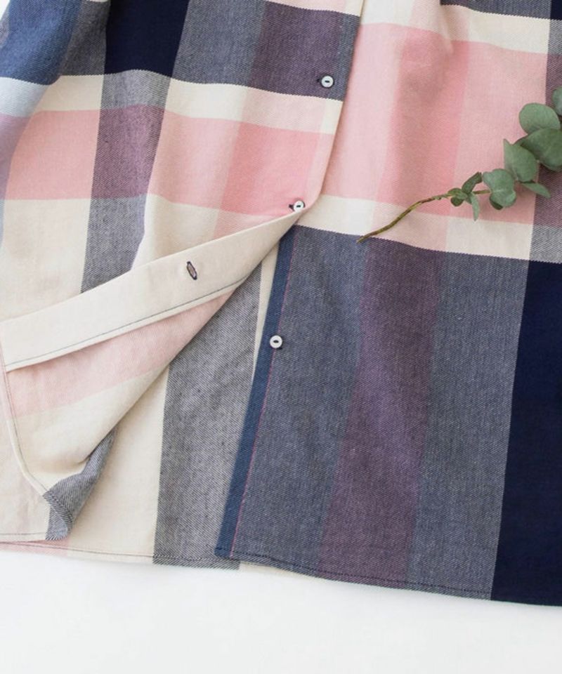 ・衿と袖口カフスは配色無地づかいが上品さをプラス。