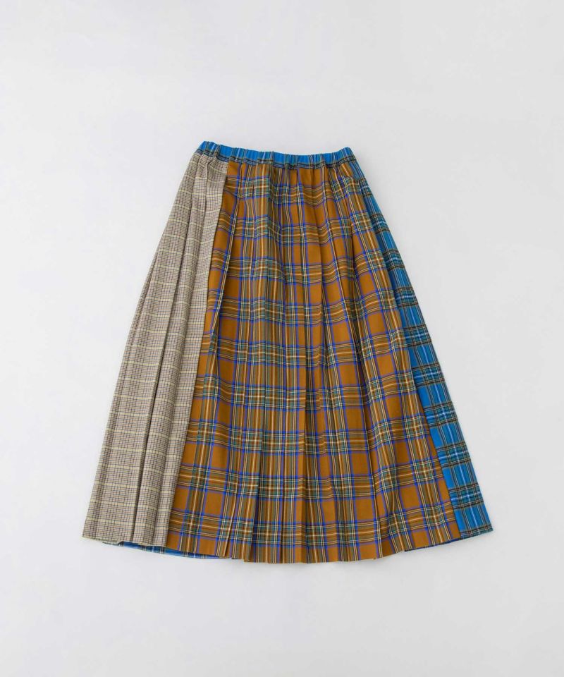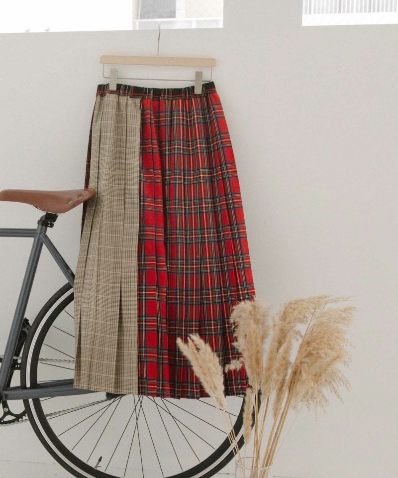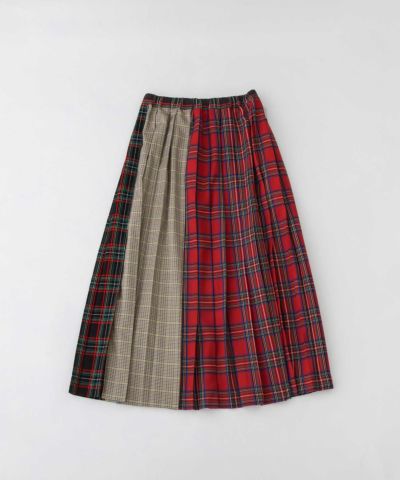 ・2つの色違いのタータンチェックと千鳥チェックの3種類を組み合わせたミックススカート。