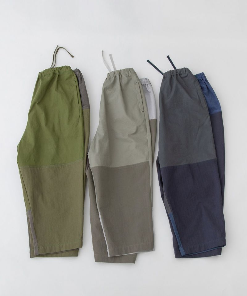 ・しっかりとしたツイル起毛とヘリンボーンの近似色に、秋らしいコーデュロイを組み合わせた異素材ミックスのパンツ。