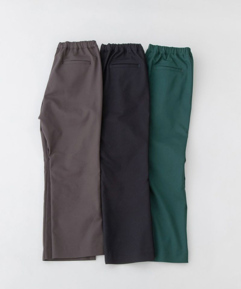 ・しっかりと肉厚のダブルクロスストレッチクロップドパンツ。しっかりとした安定感のある生地は、着心地の良いストレッチ入りとシワになりにくい二重織。コットンナイロンなので通年で活躍できる素材です。