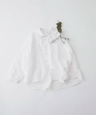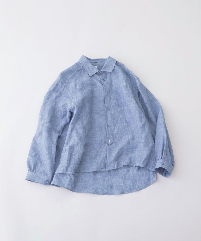 ・ボリュームのある袖と、後ろヨークギャザーでふんわりした雰囲気のシャツ。やや大きめでワイドな衿も古着ライクでほっこりした優しさがあります。