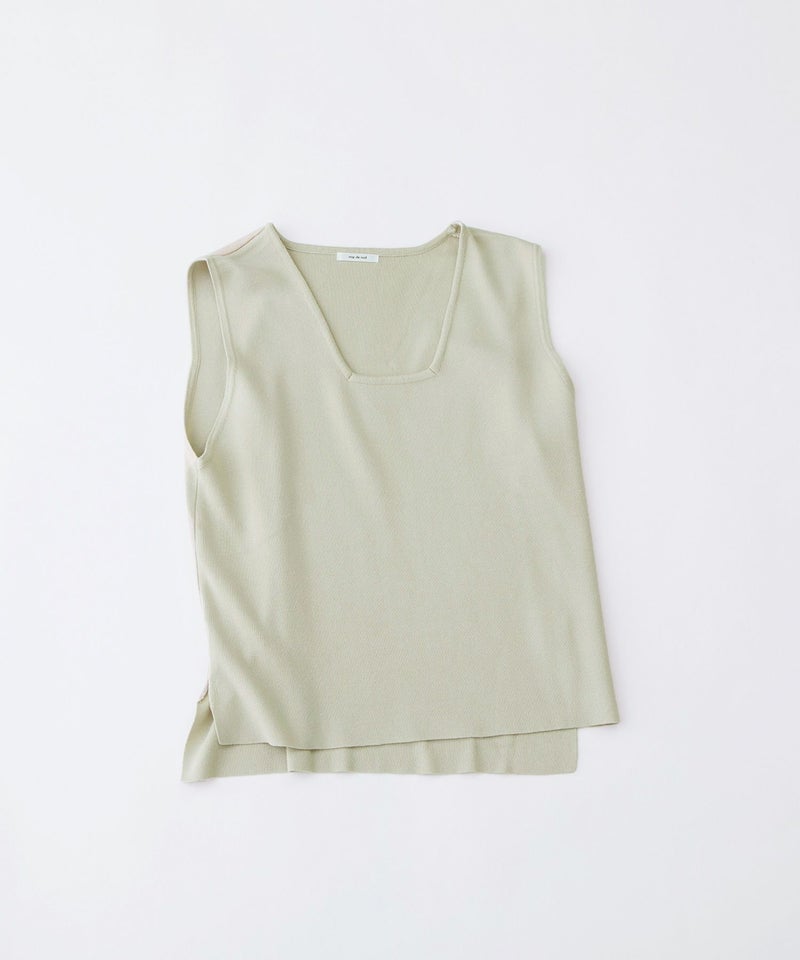 ・しっかりとしたハリ感と目の詰まった編地が上品な総針編みのニット。きれいめなレーヨン糸にポリエステル糸を添えプレーティングで編み地をしっかりさせています。