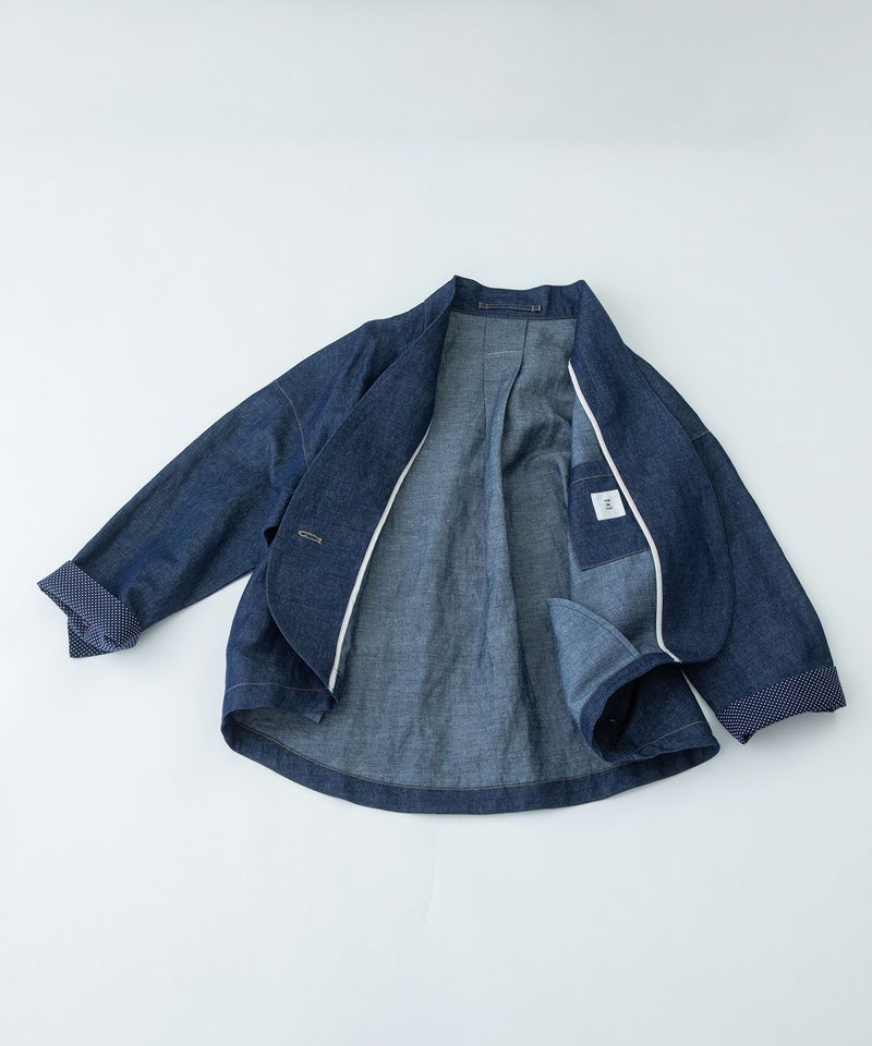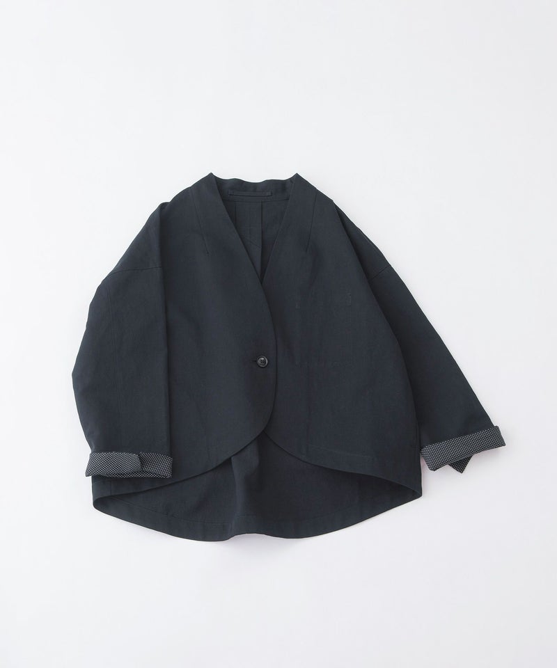 綿麻素材のノーカラージャケット