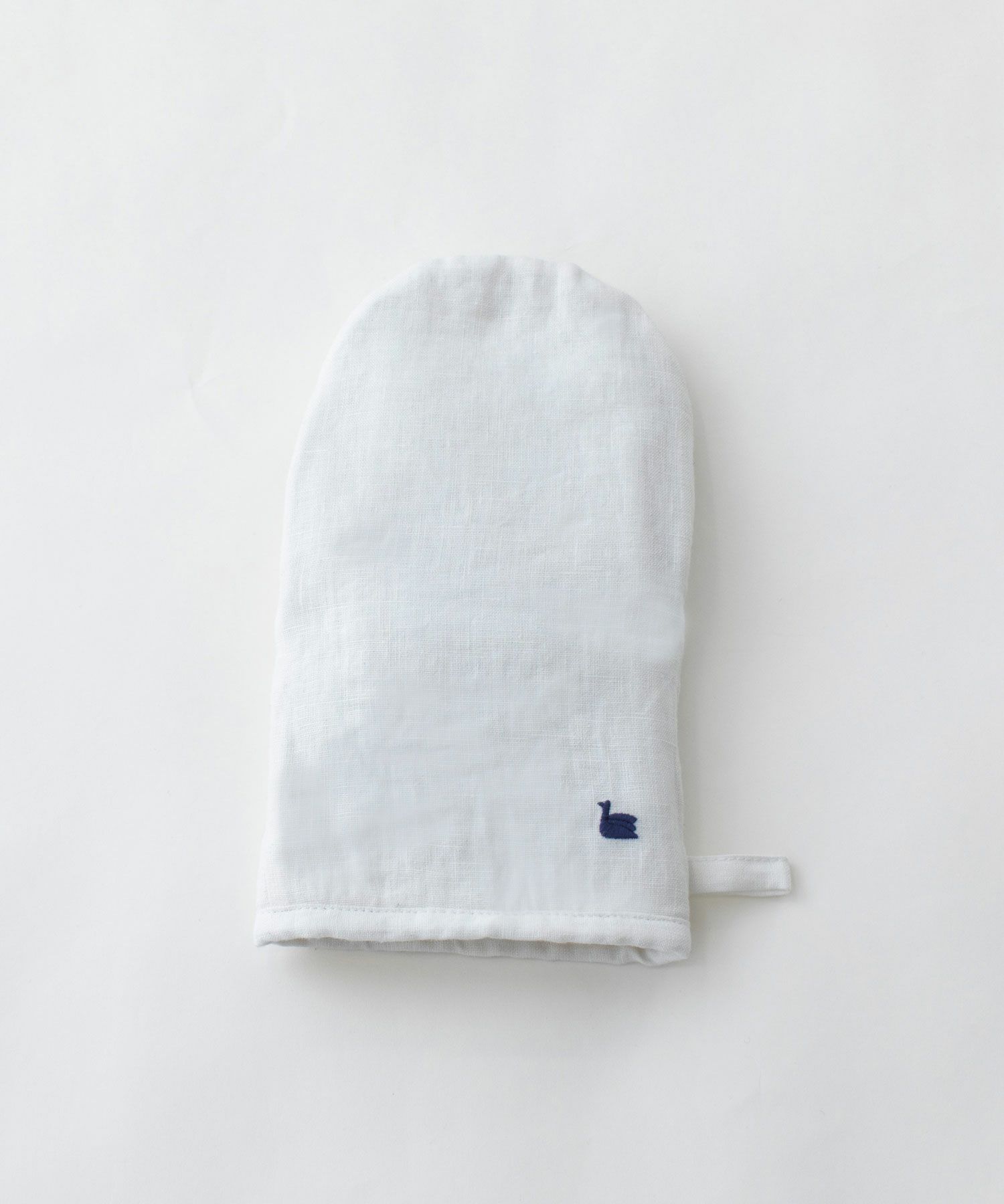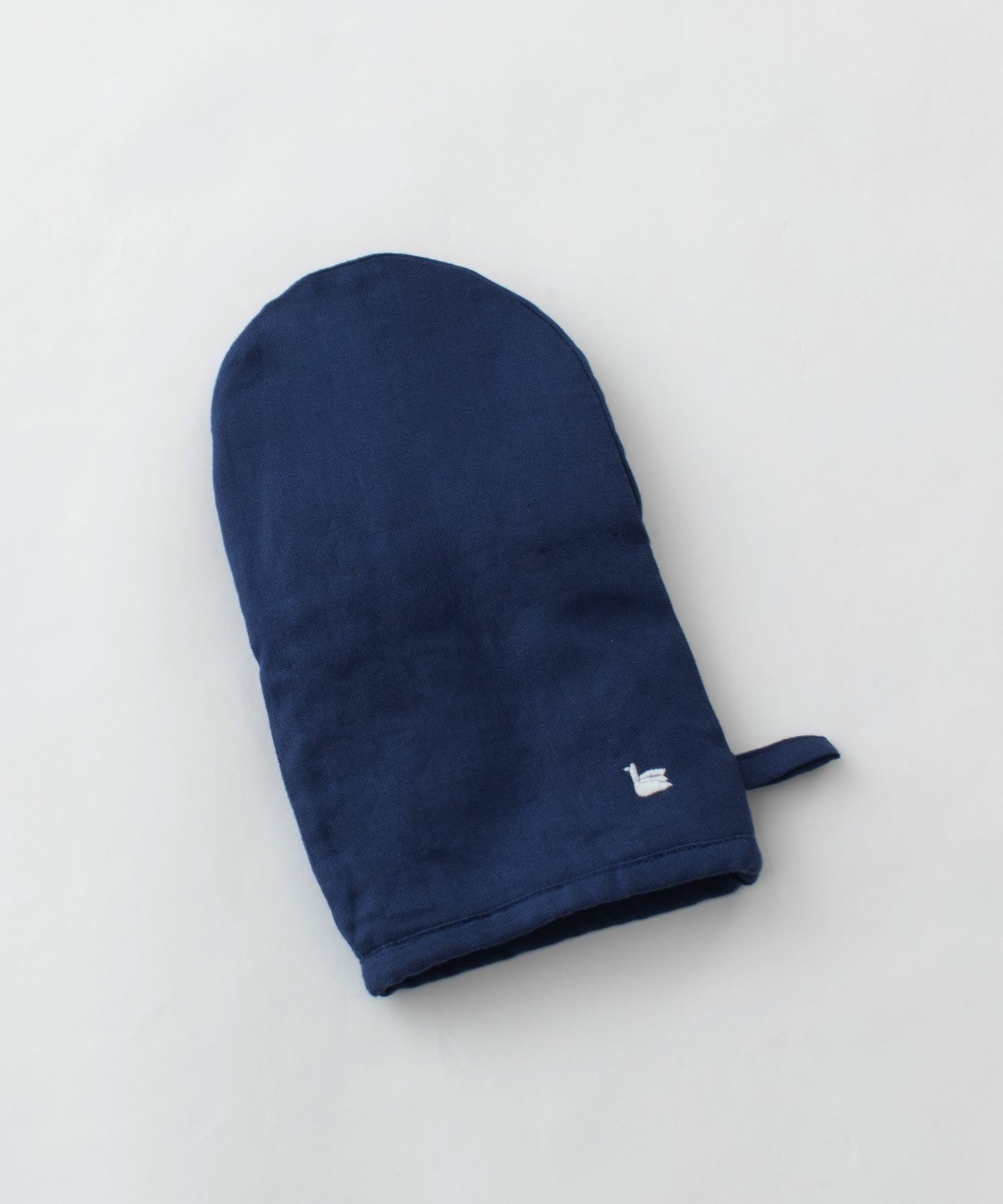 オーブン料理やお鍋を掴むのに欠かせないミトン。天然素材の中でもっとも丈夫と言われるリネンを使用しました。吸水性がよく、水に濡れても乾きが早いため清潔にお使いいただけます。手袋型は指先まで自由がきき、フライパンや大きめの鍋もしっかりとつかみやすくなっています。置いてあるだけで、毎日のお料理が楽しくなりそうなリネンミトン。nop de nodのアイコンであるスワンをさりげなく刺繍してあります。プレゼントにもおすすめです。