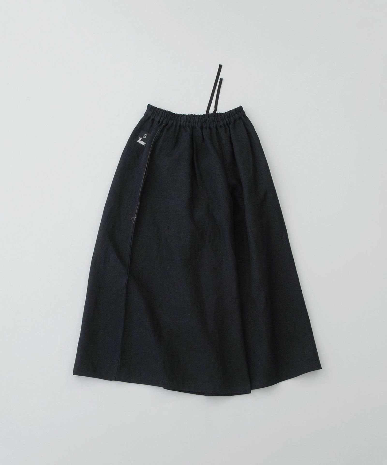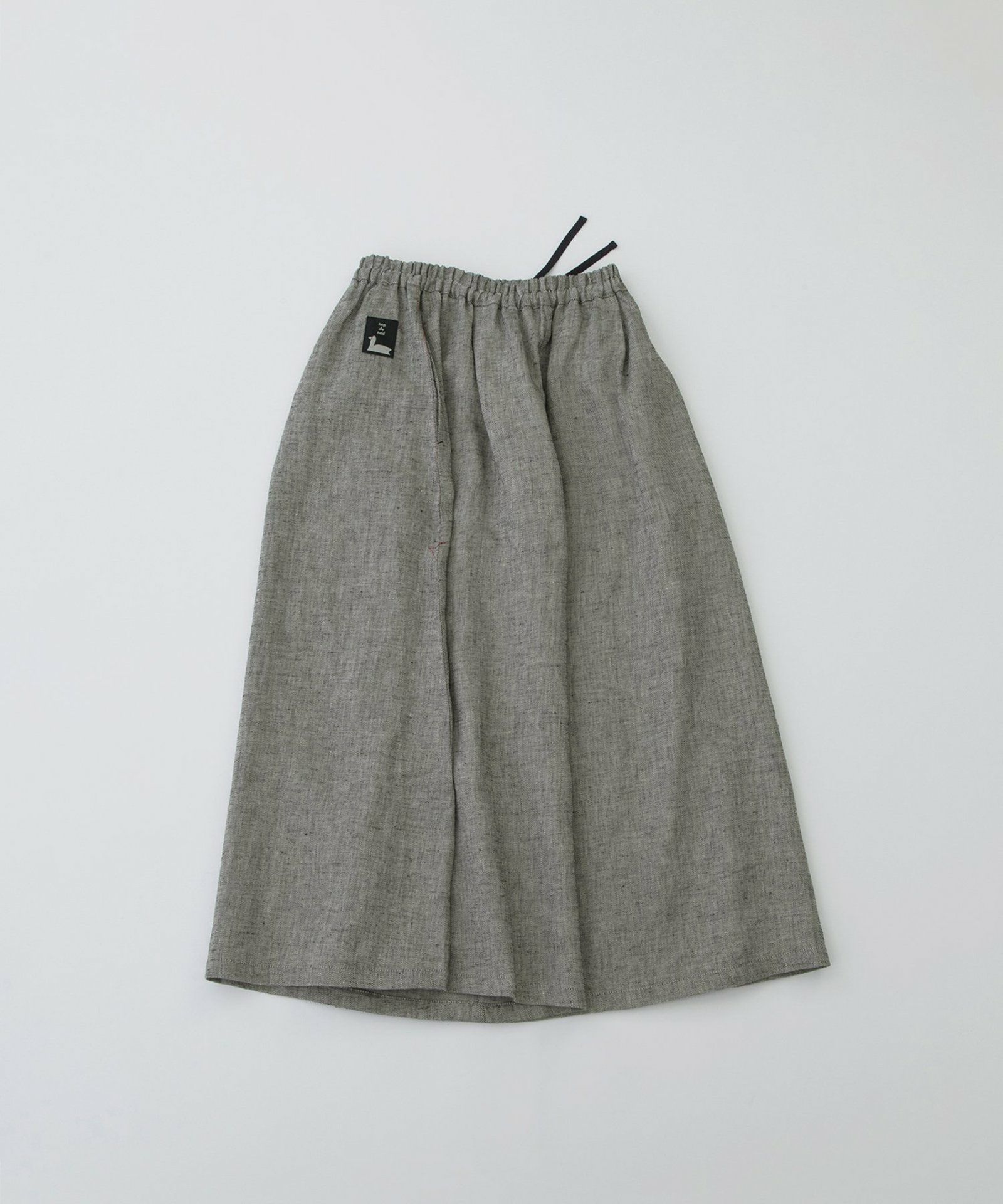 暖かみのある素材のマキシパンツ。くるぶしまで届くマキシ丈で、ラフに着こなしながらきれいに広がるフレアシルエットが優雅なボトムです。ツイード見えする麻100%のリネンビエラ起毛を使用。ウエストはゴム仕様で、内紐つき。右後ろのスワンネームやサイドの配色三角ステッチ、両サイドポケットのスカラップステッチなどもさりげないアクセントを効かせています。
