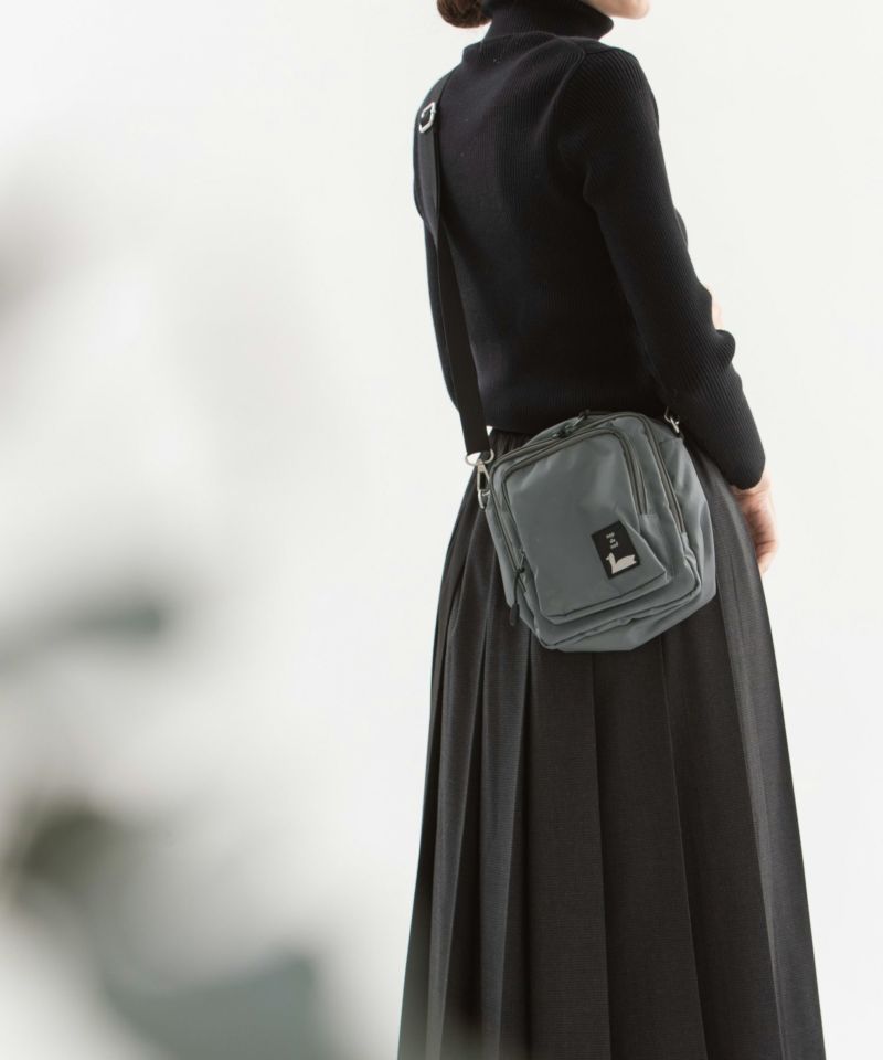 四角いポケットデザインがポイントのナイロンバッグシリーズ。四角いフォルムのショルダー 、コンパクトながら、厚めのマチで沢山入ります。メイン収納の他にフロントポケット、さらに大きく開くポケットが備えられ内側の収納ポケットも充実。細かなものを整理して入れられる機能性があり、普段使いにも、旅行などのサブバッグにおすすめです。紐状の丈夫なファスナー引手も使い勝手の良いショルダーです。重量約300g