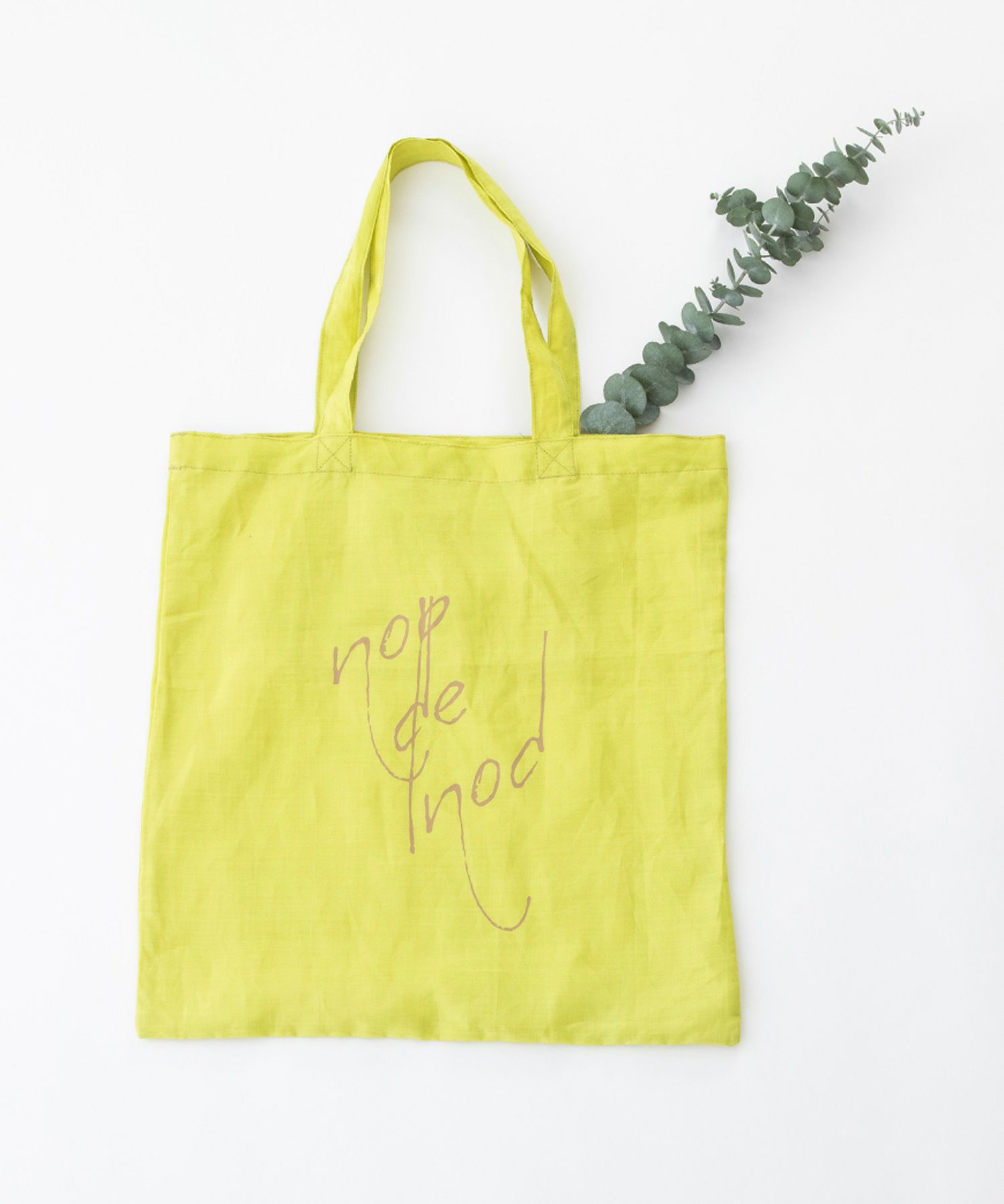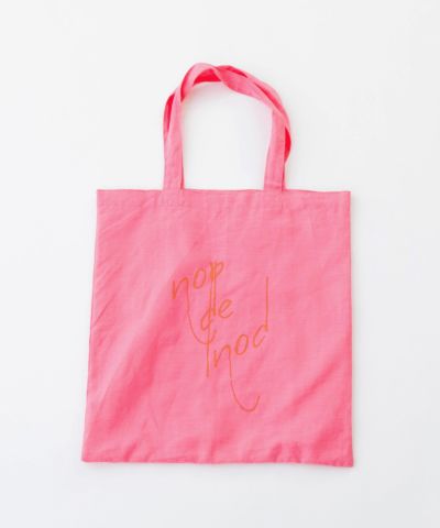 ラミー麻混の発色が良い軽い生地を使った、5色のカラフルなカラー展開です。Tシャツとお揃いの書き文字ロゴプリント入り。
