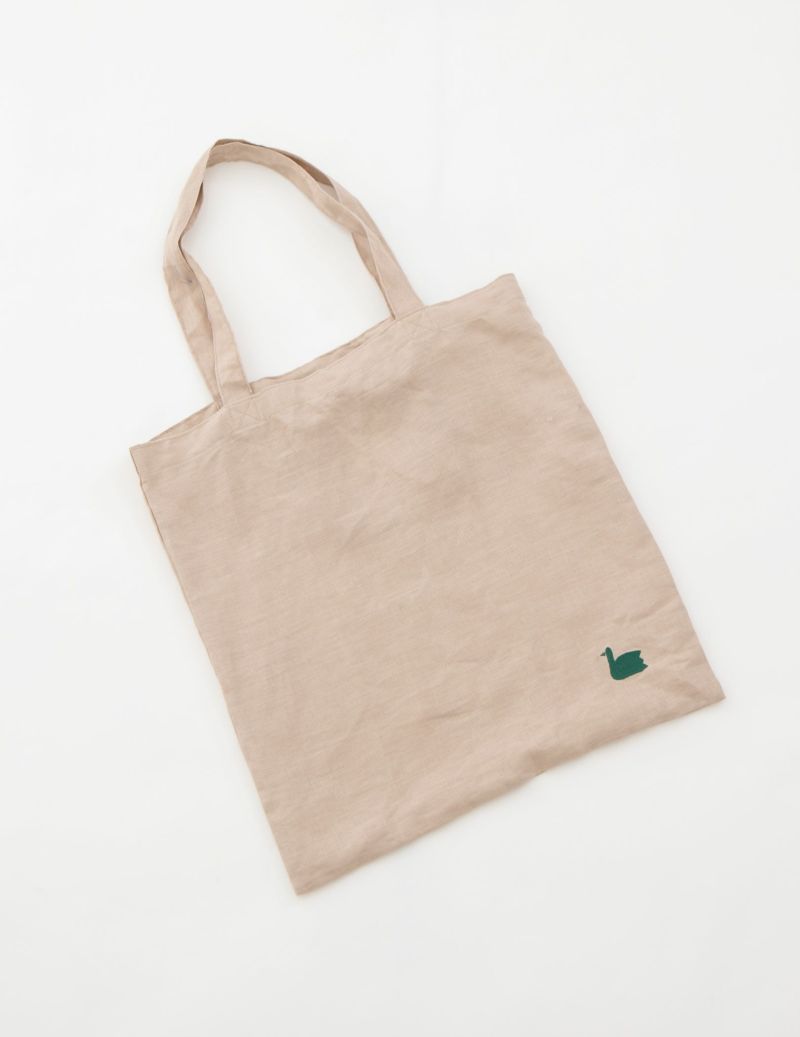 Laukkuシリーズのリネンローンバージョン。大きめサイズが使いやすいポケッタブルなエコバック。トレードマークの白鳥の刺繍入り。
