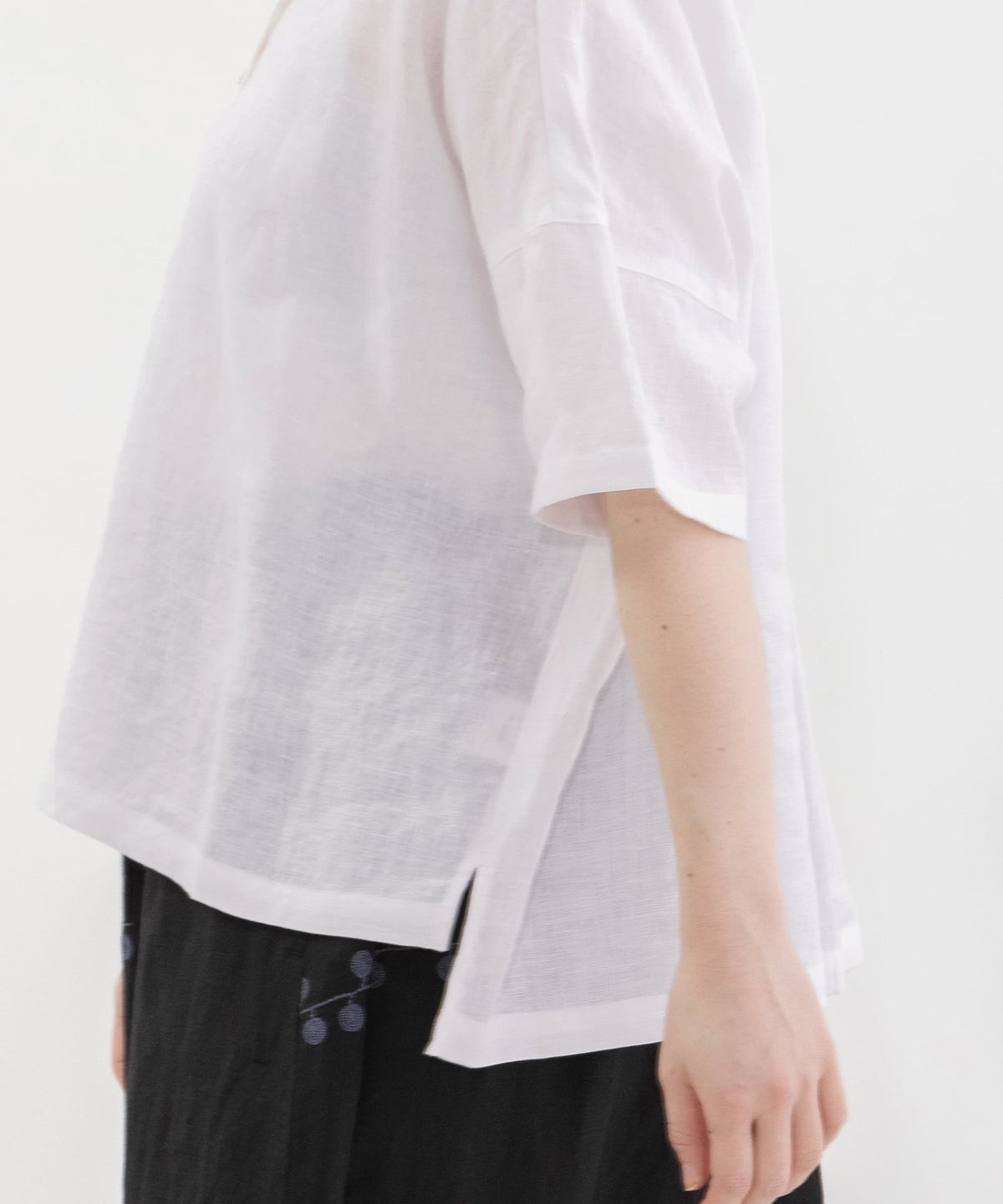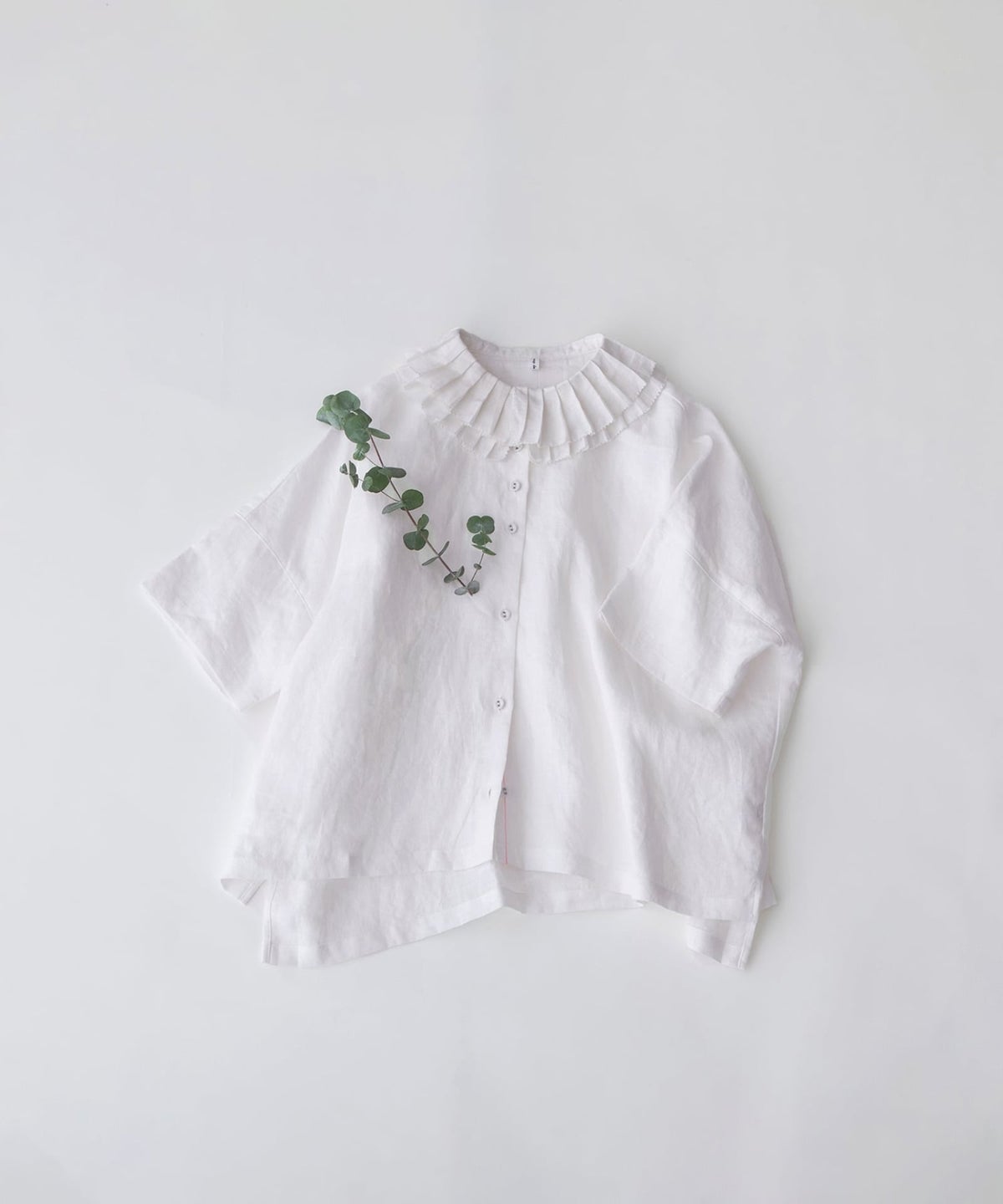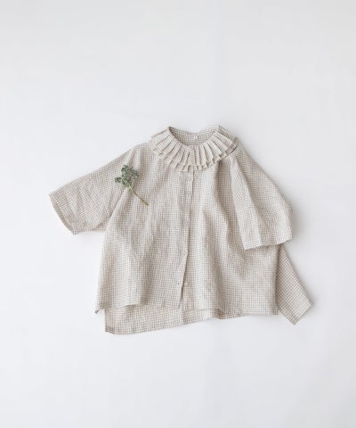 リネンダブルプリーツ衿5分袖ブラウス