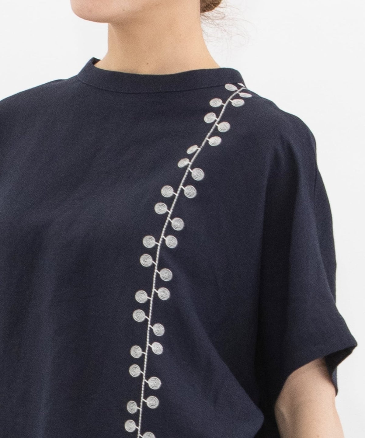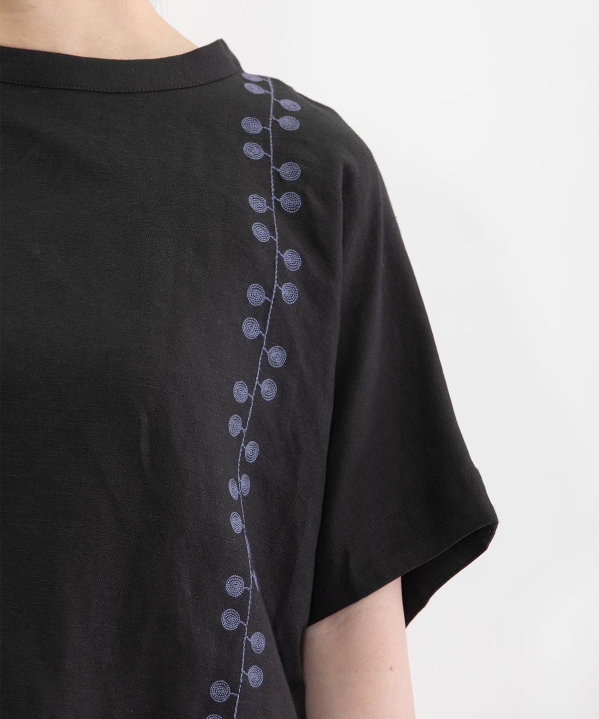 リネンレーヨンライン刺繍2wayトップス