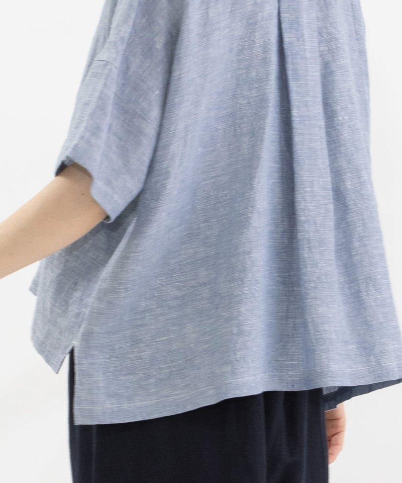リネンダブルプリーツ衿5分袖ブラウス