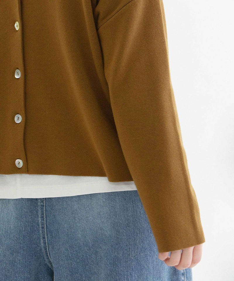 12ゲージの総針編みで仕立てた、レーヨンポリエステル素材のカーディガン。通年着られるさらりとした質感で、毛玉になりにくく、お手入れも簡単です。短め丈でゆったりとしたワイドシルエットは、羽織りとしてはもちろん、前後どちらでも着られる2WAY仕様。ボタンを前にすればカーディガンとして、後ろにすればプルオーバーとして着こなしの幅が広がります。短め丈でゆったりとしたワイドシルエットは、羽織りとしてはもちろん、前後どちらでも着られる2WAY仕様。ボタンを前にすればカーディガンとして、後ろにすればプルオーバーとして着こなしの幅が広がります。