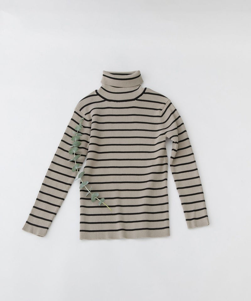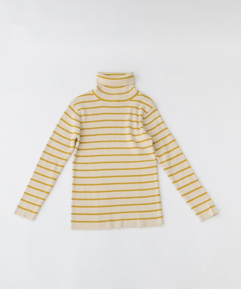 ロングシーズン着られるコットンで編み立てたボーダーリブニット