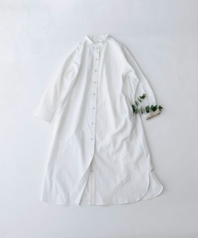 ・凛々しいスタンドカラーのmiscロングシャツワンピース。