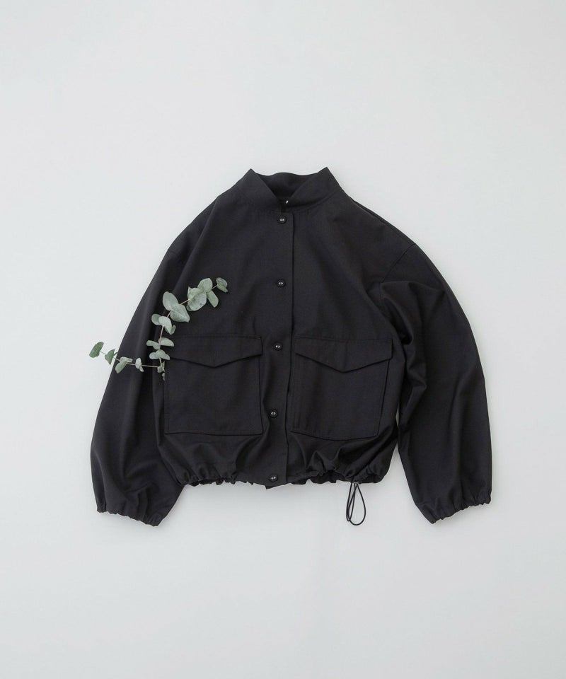 大きなポケットデザインのショートブルゾン。一重仕立てでラフに羽織れて、きちんと感も出るアイテムです。秋や春の端境の季節のきちんとしたい時期に重宝するフォーマル生地の「トロピカル」で仕立てました。ポリエステルレーヨンで、しわになりにくくイージーケアがうれしいシリーズです。今季はモード感のあるアイテムを展開しています。共くるみボタンのやさしい雰囲気と、背中のスワン刺繍がさりげないアクセントです。
