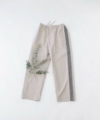 トレンドのトラックパンツをnop de nod風に取り入れたデザインパンツ。肉厚でしなやかな風合いに、裏側起毛でふんわりと暖かみを感じる生地で、すっきりストレートなイージーパンツです。右後ろにスワンネーム入り。ウエストはゴム仕様で内紐付き、両サイドポケットつき。
