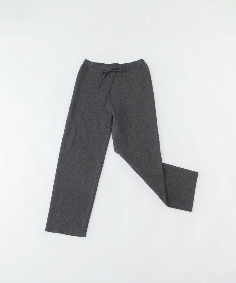 太すぎないストレートのミラノリブのフルレングスパンツ。きれいめなレーヨン糸にポリエステル糸を添えしっかり安定させたプレーティングのニット。チクチクしない肌触りで、1枚あると重宝するパンツです。