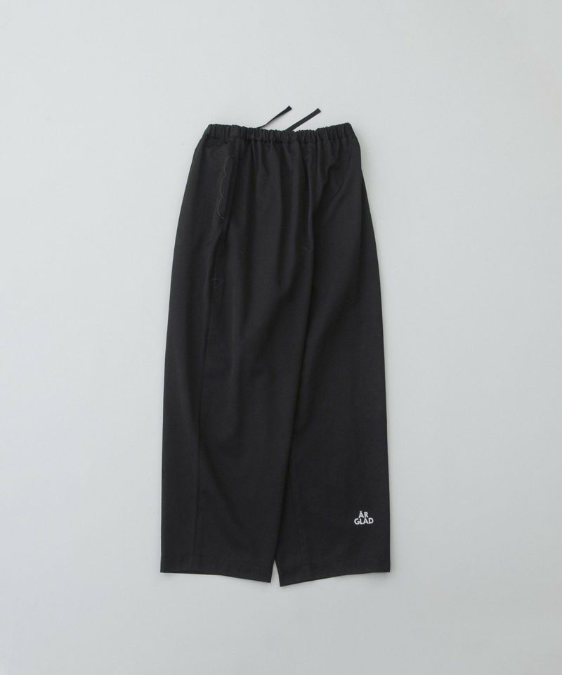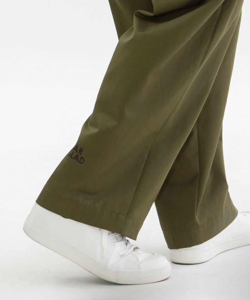 丸みのあるボリュームでカジュアルに楽しめるフルレングスパンツ。トレンチコートのような綺麗めな表面感のポリエステルコットンツイルを使用し、カジュアルすぎず上品に着こなせます。股上は深くリラックス感がありますが、高めの位置にボリュームをもたせた今どきシルエットでバランスよく決まります。右後ろ裾のロゴプリントがポイント。ウエストはゴム仕様で楽な履き心地。右後ろのスワンネームやサイドの配色三角ステッチ、両サイドポケットのスカラップステッチなどもさりげないアクセントを効かせています。