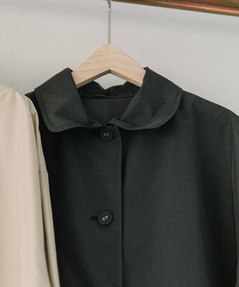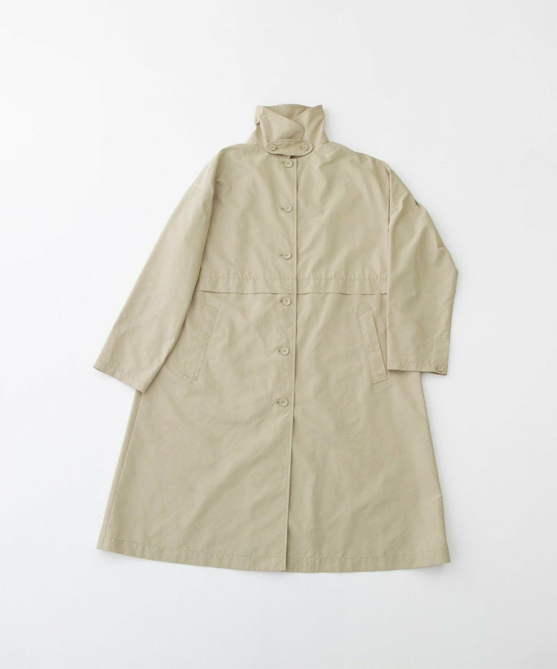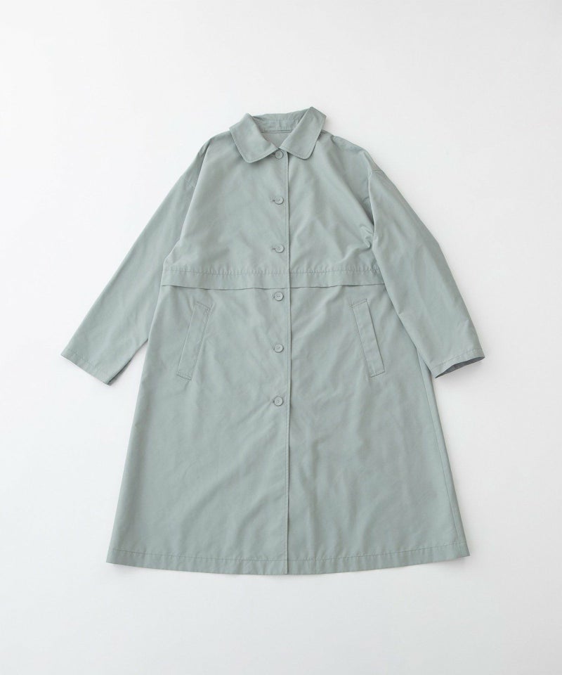 ウエストタック切り替えデザインの軽い一重仕立てのコート。スタイルが良く見える高めの切り替えで、春先や秋口の羽織として活躍してくれます。両サイドポケットつき。