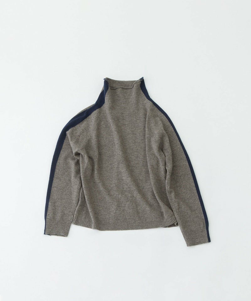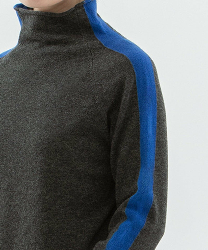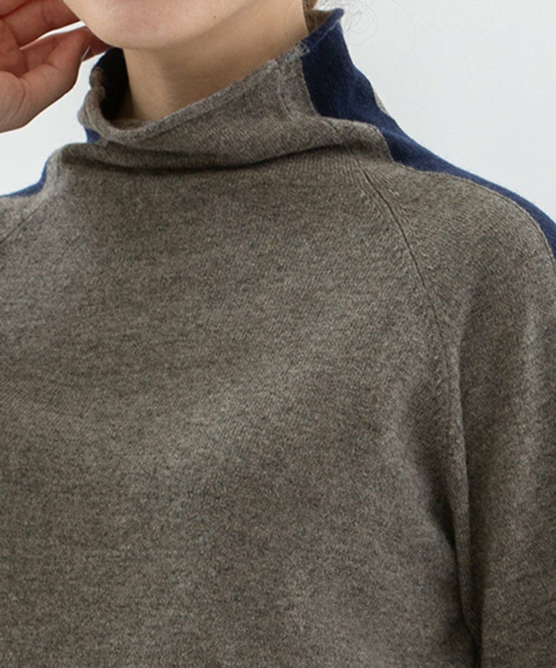 薄手でも暖かいエキストラファインメリノ糸でのタートルニット。サイドラインがアクセント、コンパクトな丈もポイントです。一枚で上品なコーディネートが完成します。