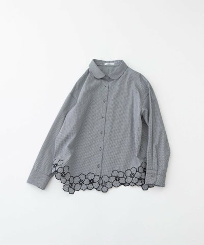 【SALE】アシメ裾刺繍丸衿シャツ