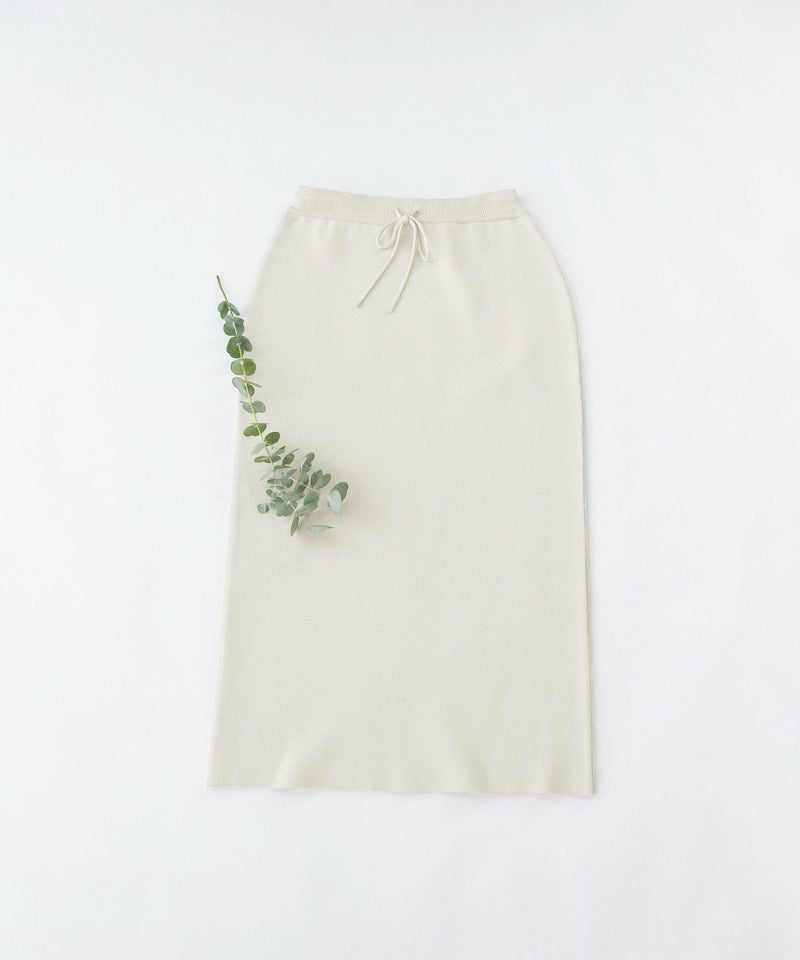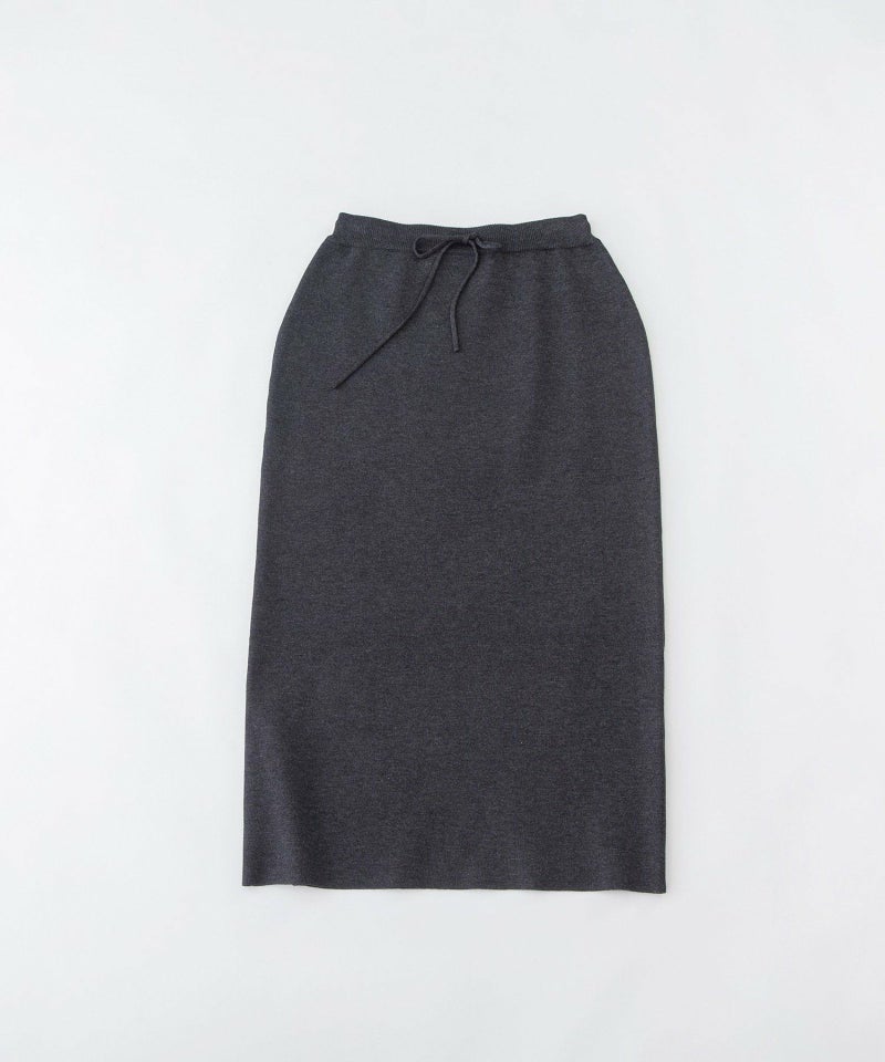 トレンドライクなシルエットが叶うミラノリブのストレートスカート。体型がひびかず、スリット無しでも歩ける裾幅が着やすいポイント。きれいめなレーヨン糸にポリエステル糸を添えしっかり安定させたプレーティングのニット。チクチクしない肌触りが着やすい1枚。ウエストはゴム仕様、内紐付きです。