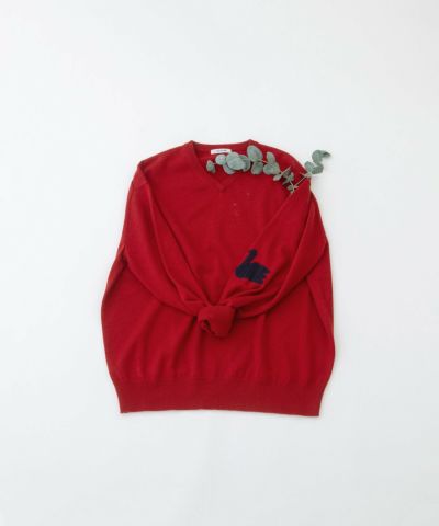 【WINTER SALE】Vネックセーター左袖スワンインターシャ