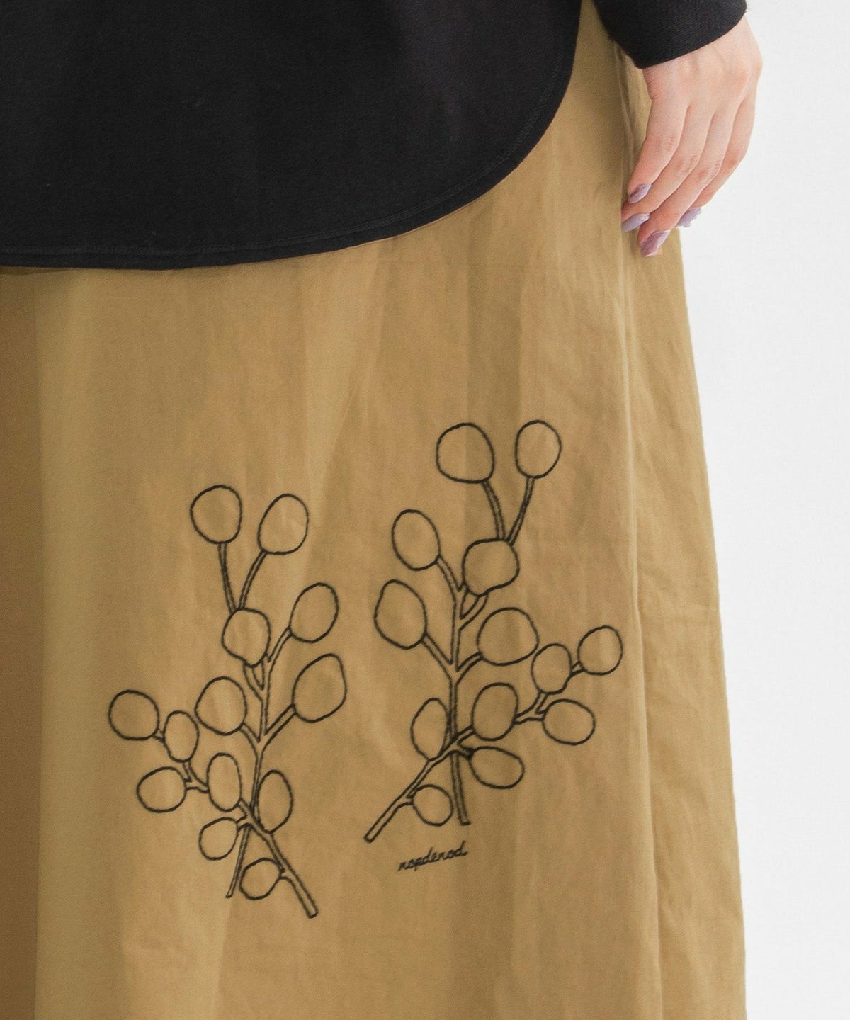 【WINTER SALE】コットンツイルユーカリ綿刺繍スカート