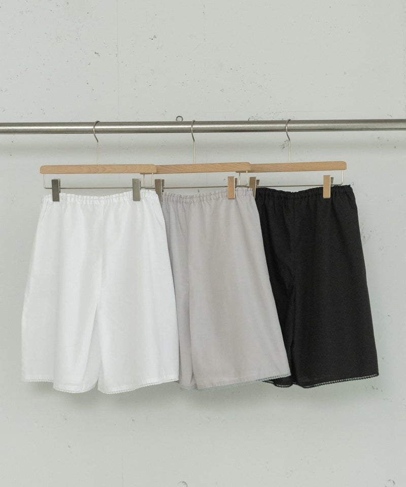 1枚持っていると便利なショート丈のインナーパンツ。ボトムスとの摩擦が少なくスムーズな履き心地のポリエステルコットン素材を使用しています。ワンピースなどの下に重ねるのはもちろん、部屋着としても着用していただけます。